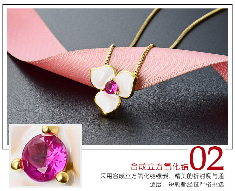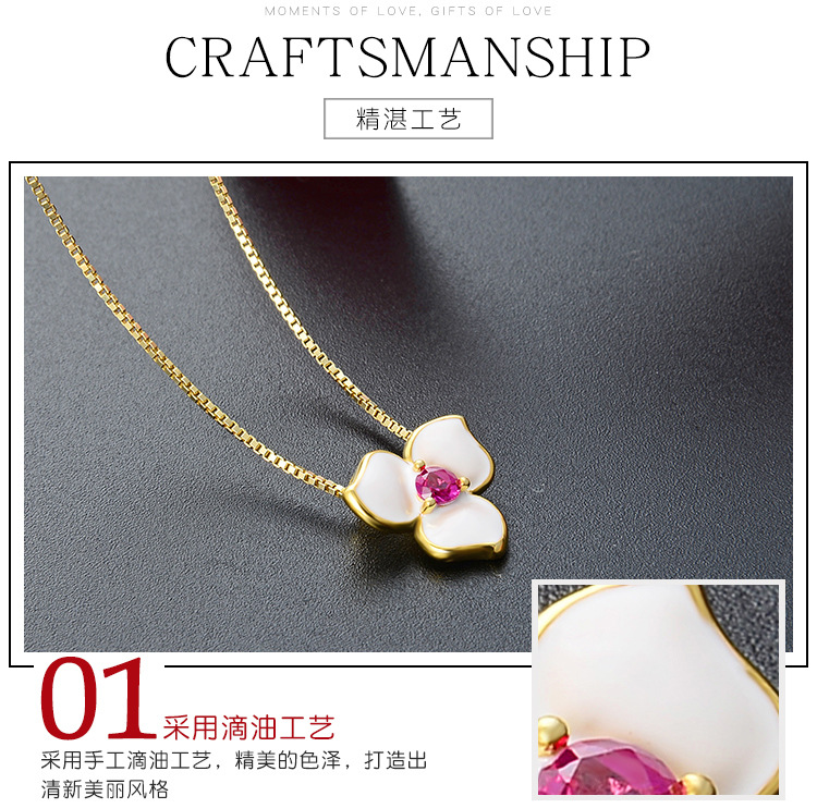 Japón y Corea del Sur lujoso ligero collar de pétalos de tres hojas mujer 925 plata esterlina moda versátil cadenas clavículas ins colgante de flores goteando aceite