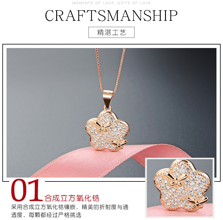 925 plata esterlina collar de flores de mariposa de zircon para mujeres lujo ligero universal nicho estilo colgante de alta sensación colgante