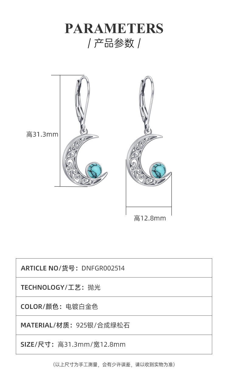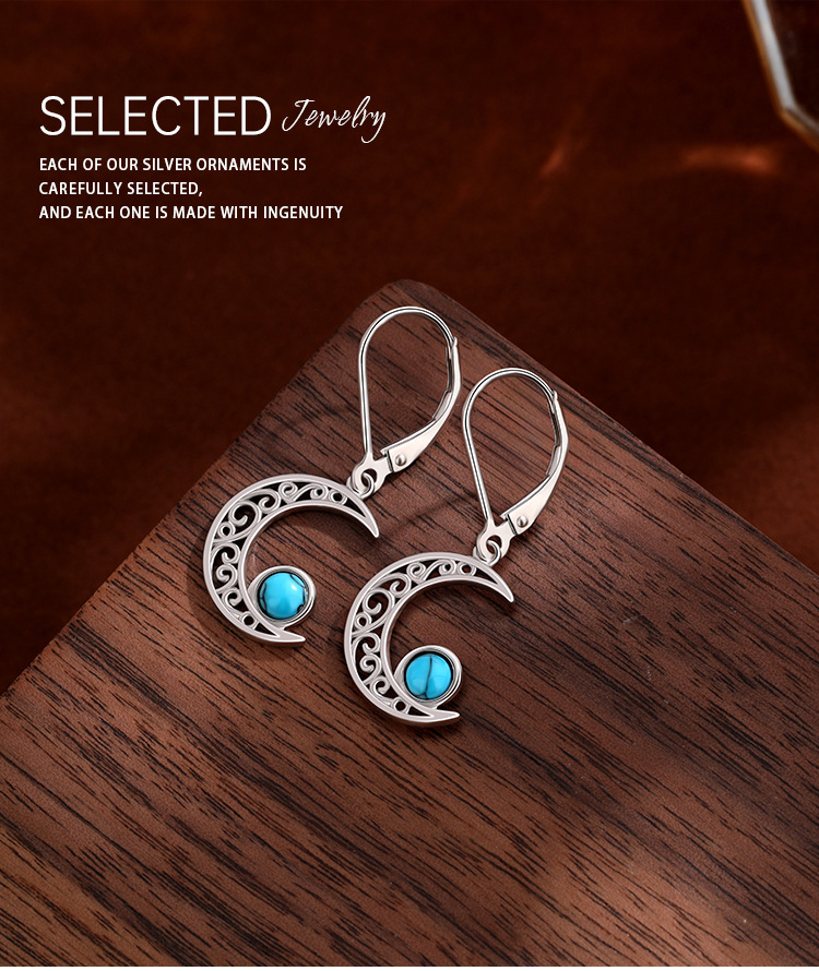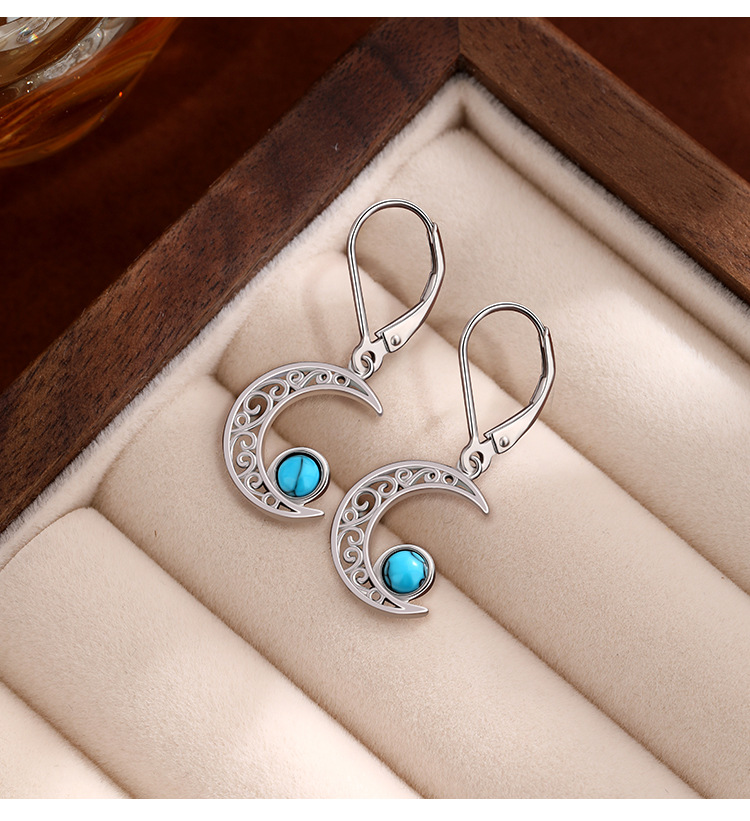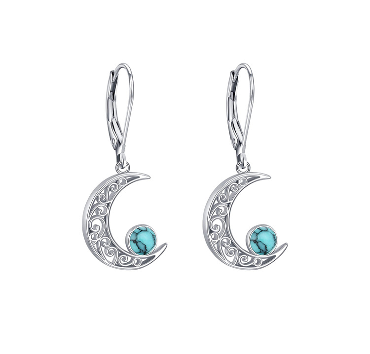 Europa y los Estados Unidos transfronterizos 925 plata esterlina turquesa pendientes de lujo ligero de lujo alto sentido celta estrella de luna pendientes de orejas