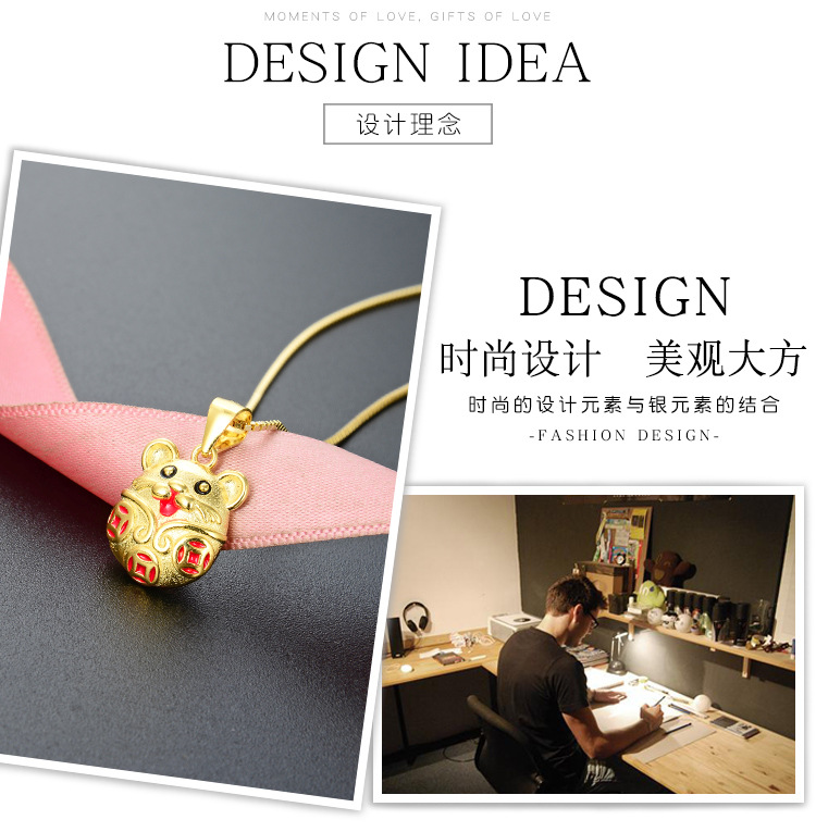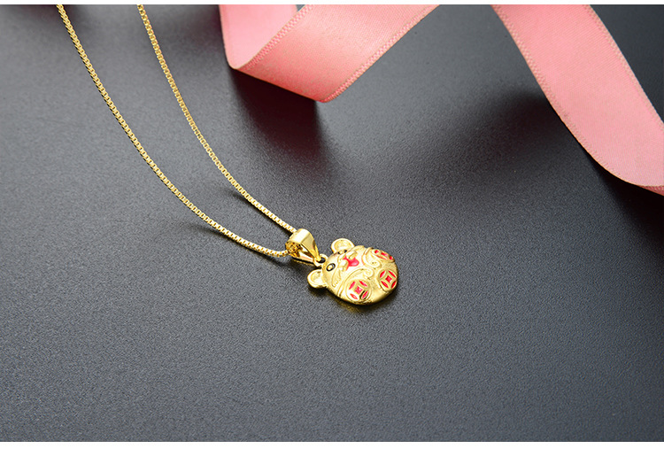Regalo del día de San Valentín de Qixi 925 plata esterlina oro antiguo goteo de aceite de cobre moneda zodiacal colgante de ratón de la vida año collar mujer