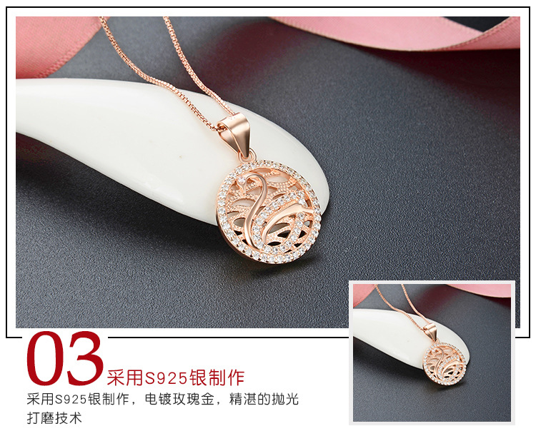 925 plata esterlina collar cisne moda femenina simple lujo ligero alto sentido universal cadena de clavícula colgante redondo de piedra