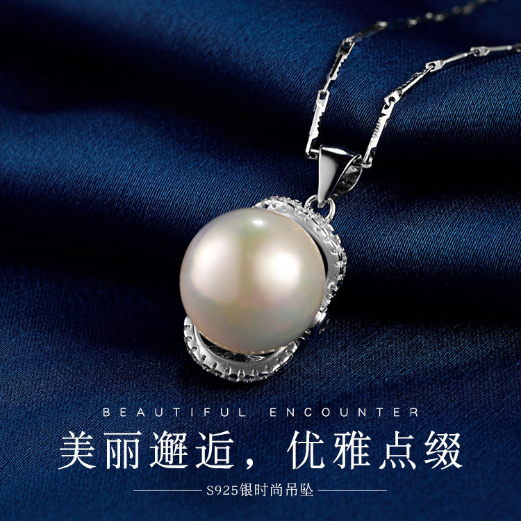 Collar de perlas de piedra de plata S925 mujer simple coreana madura colgante ligero de lujo moda joyas de cadena de clavícula