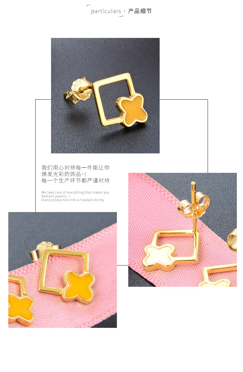 Europa y los Estados Unidos diamante cuatro hojas pendientes mujeres S925 plata esterlina chapado en oro ligero lujo personalidad nicho joyería en vivo suministro