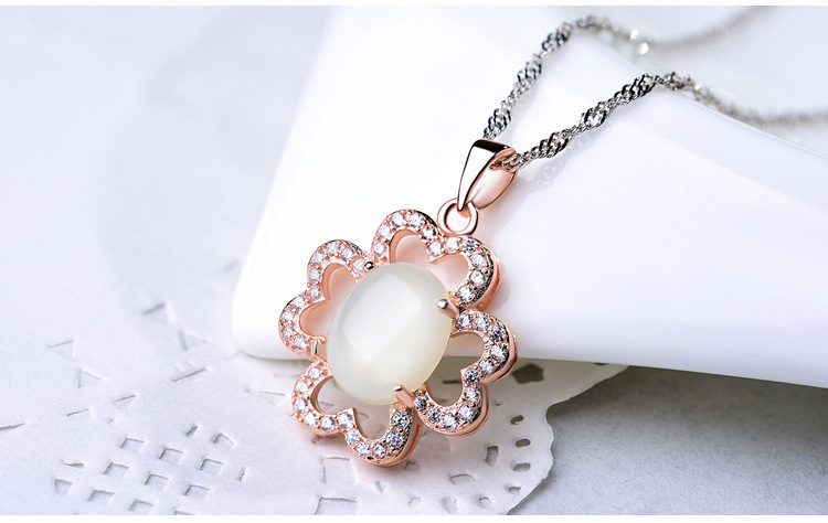 S925 plata y diamante de oro collar colgante de cuatro hojas colgante mujer al por mayor japonés y coreano pequeña cadena clavícula de temperamento fresco