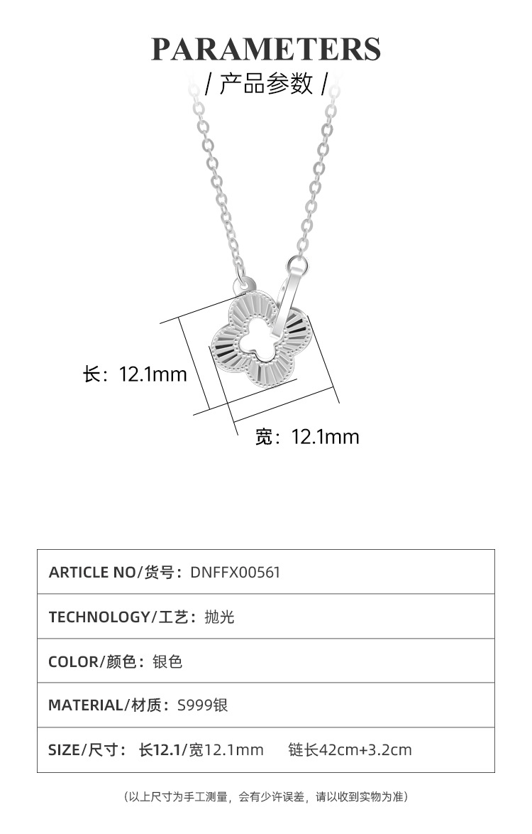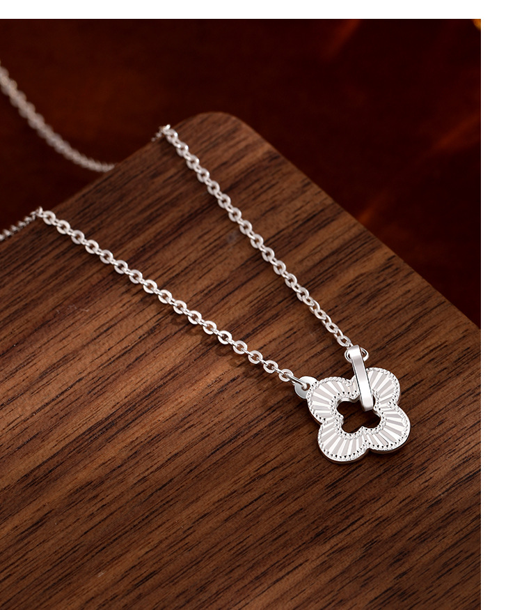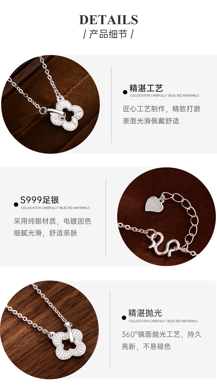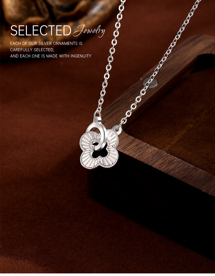 Hielo roto de hielo doble anillo cuatro hojas collar de plata 999 plata ligera lujosa alta sensación pequeña cintura colgante cadena de suéter