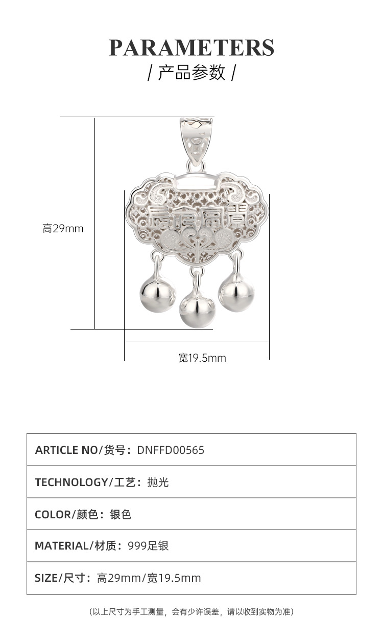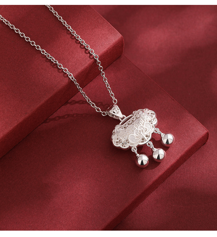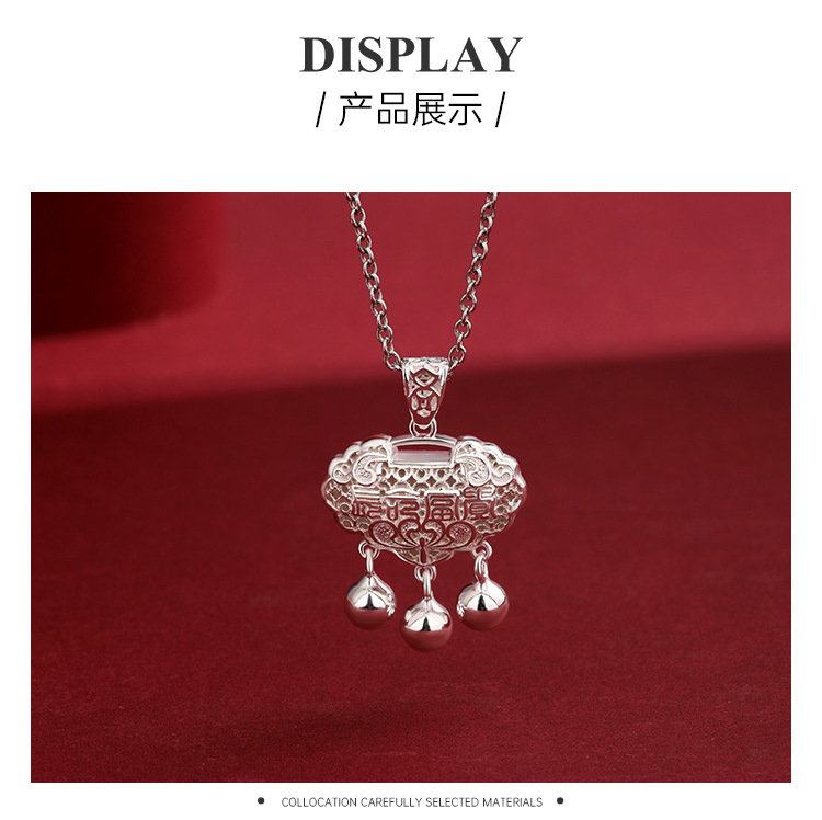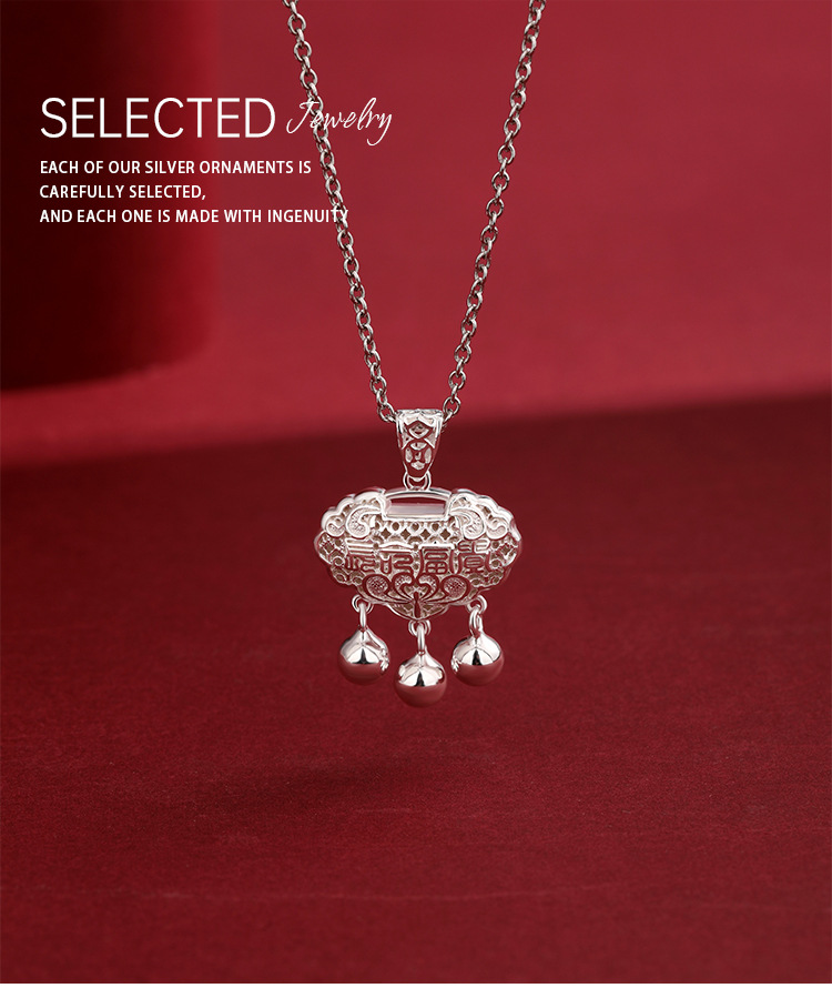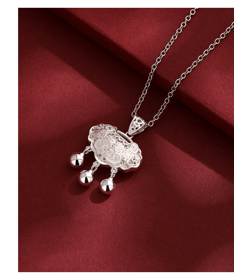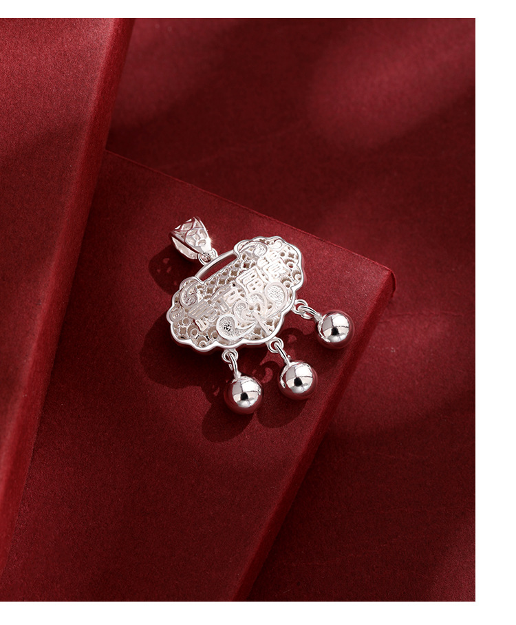 Pie de plata 990 bebé colgante de cerradura de larga vida mujer larga vida rica bolsa de cerradura hueca bebé cerradura de plata regalo de luna llena