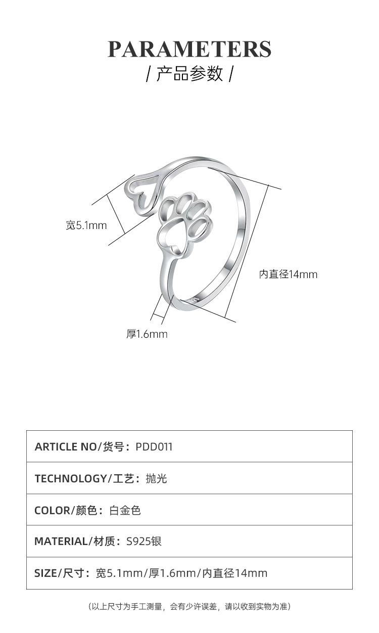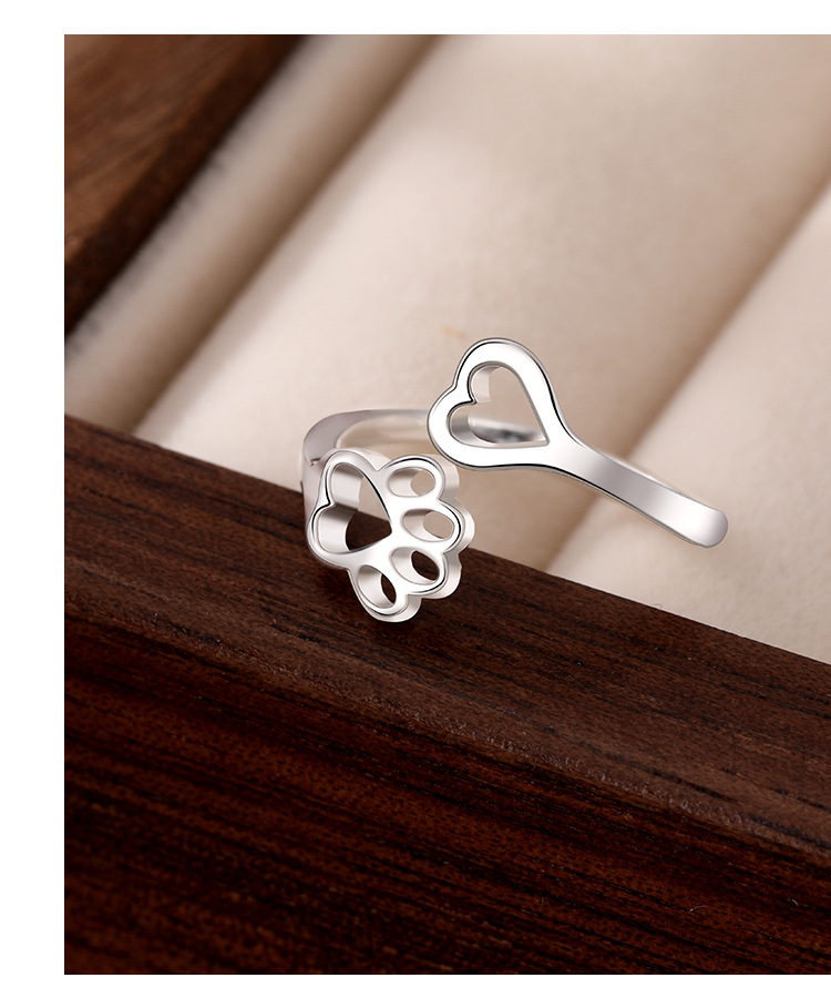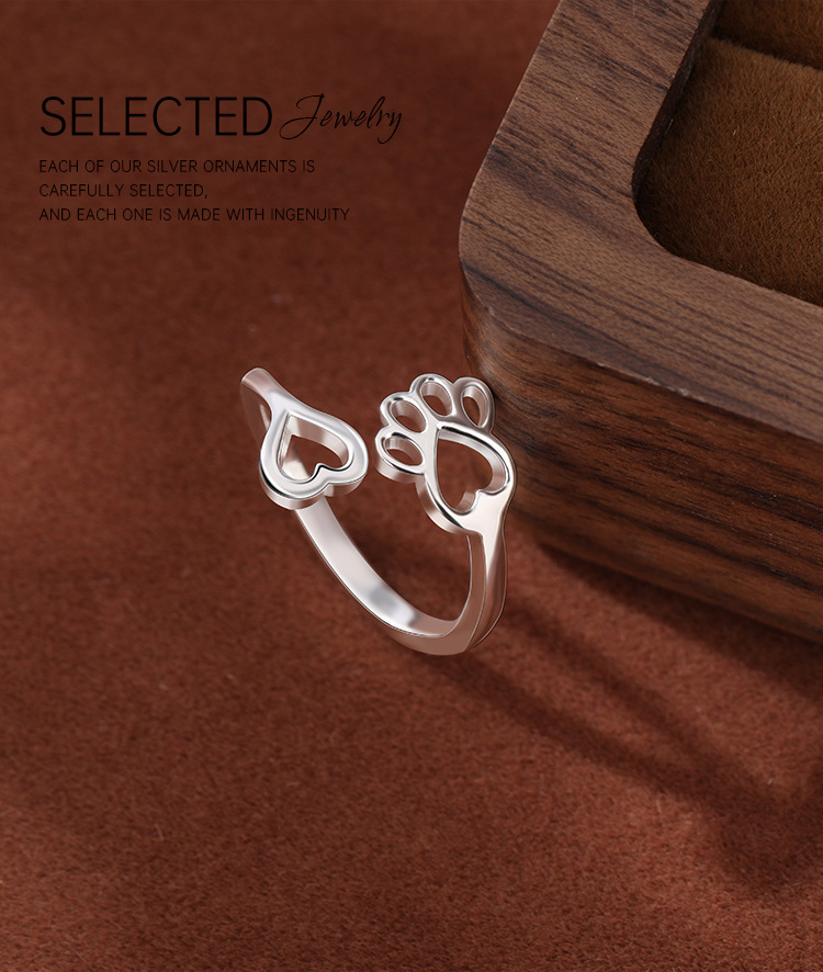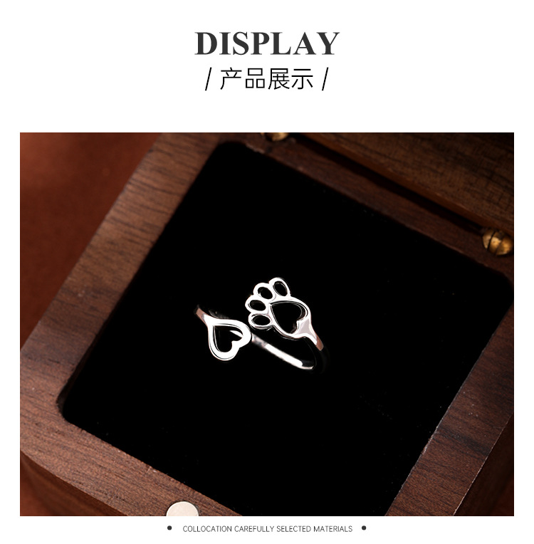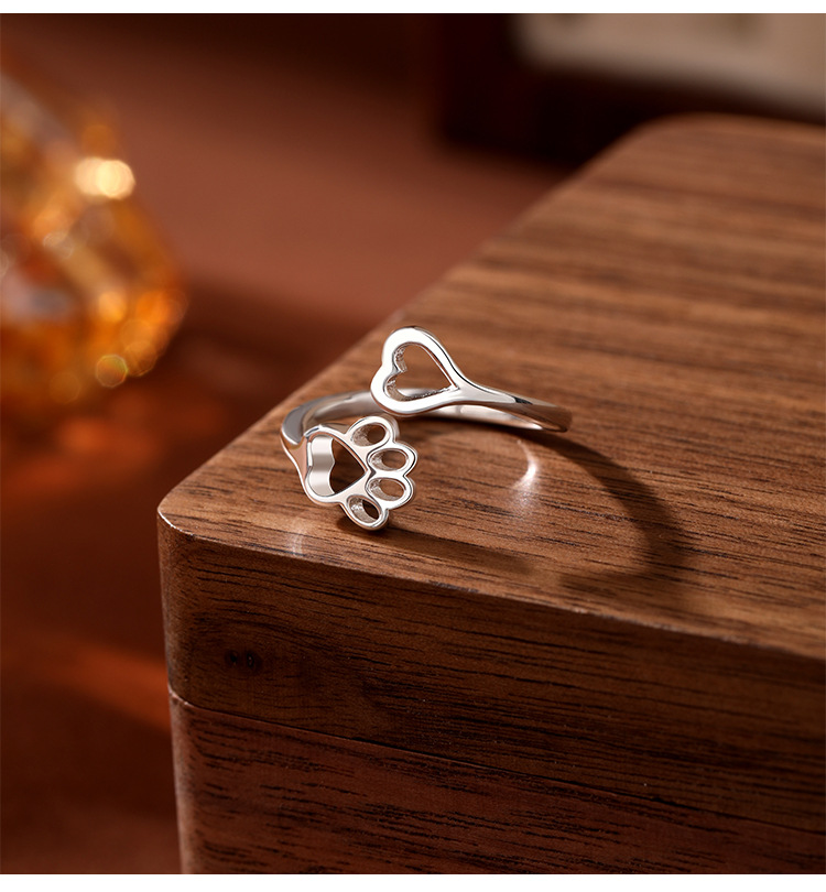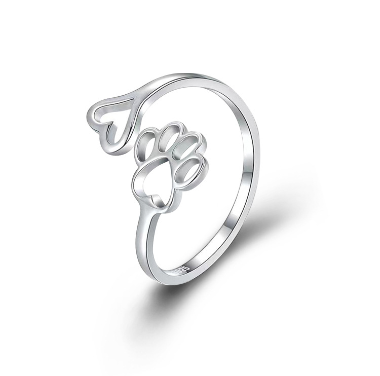 TEMU transfronterizo Amazon 925 plata esterlina hueco garra de gato impresa huella de perro anillo de dedos de cola abierto anillo de articulación femenina
