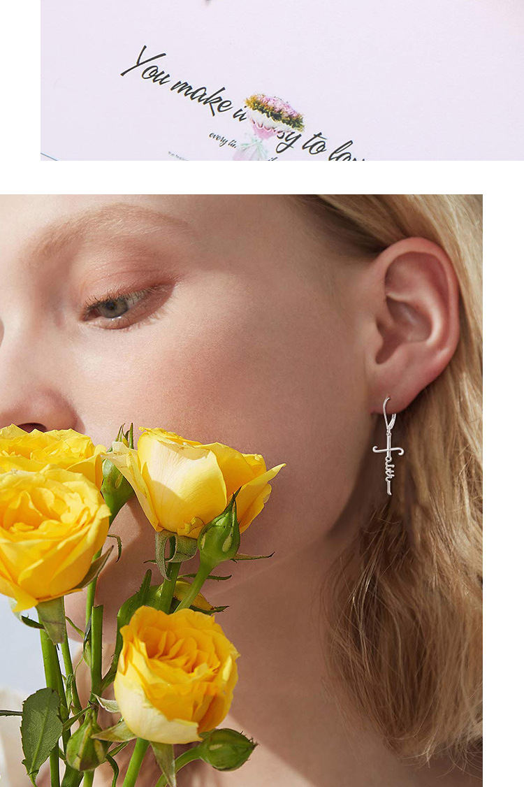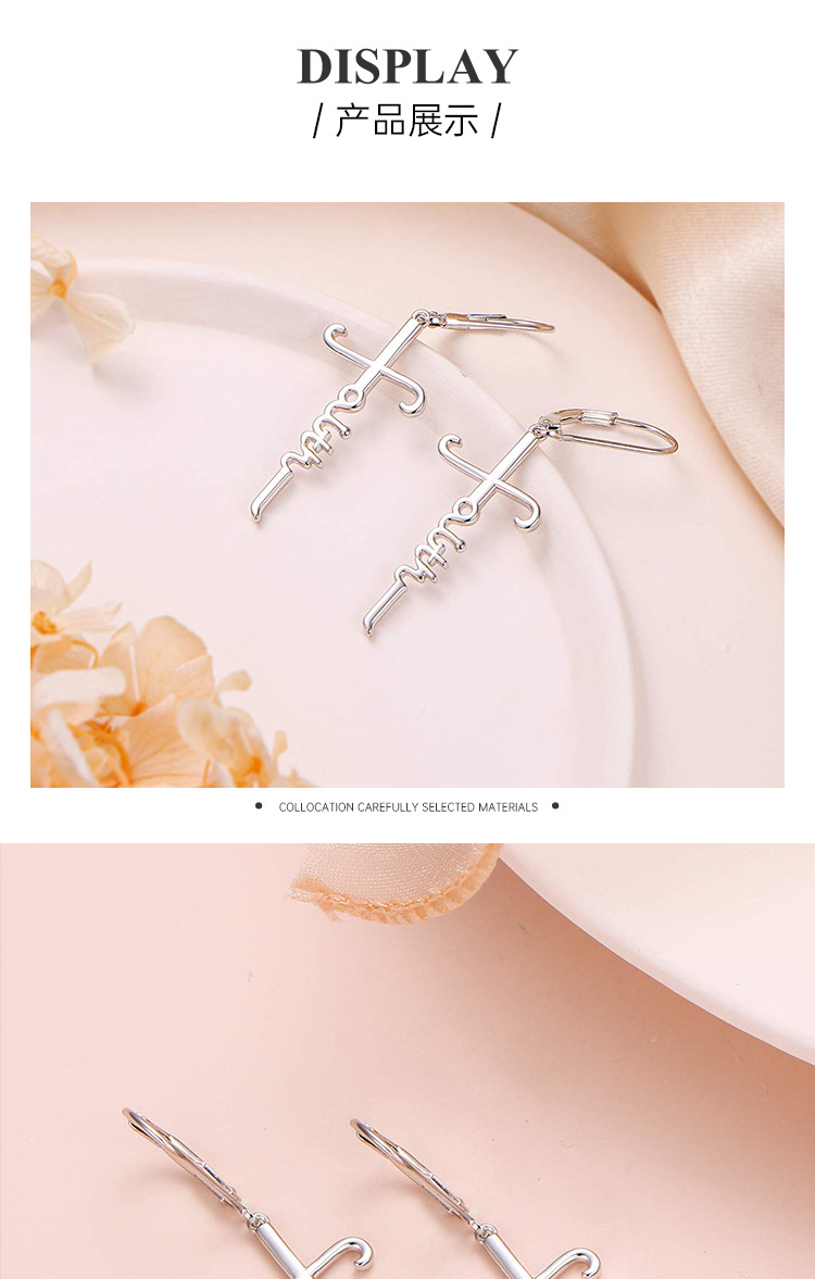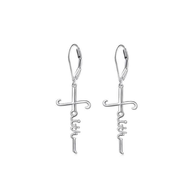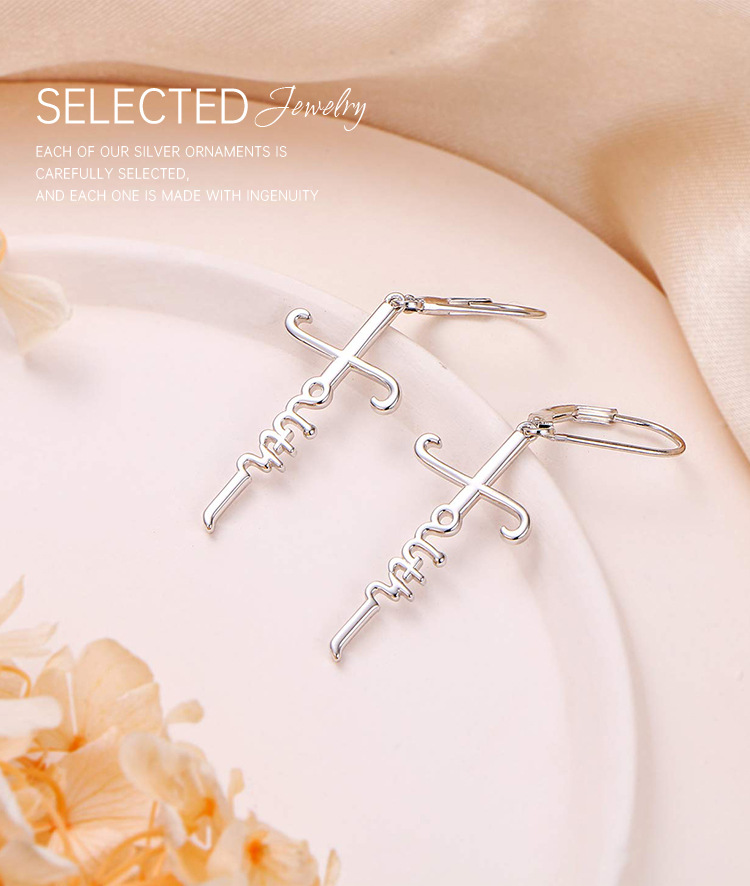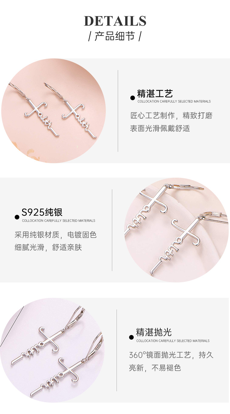 925 plata esterlina cruz pendientes pendientes TEMU nuevo estilo europeo y americano de moda fe letra FAITH pendientes pendientes