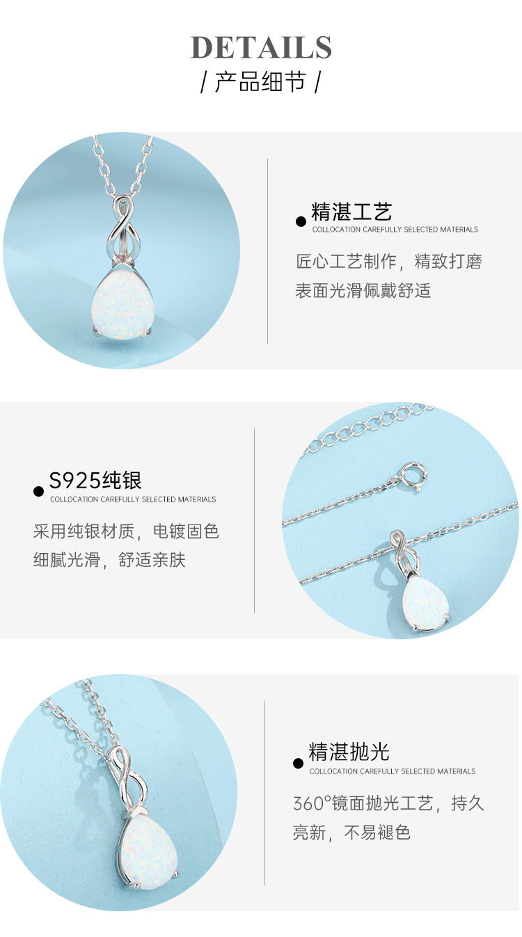 925 plata esterlina gotas de agua collar Opal para mujeres nicho temu nicho de alto nivel Opal colgante cadena clavícula