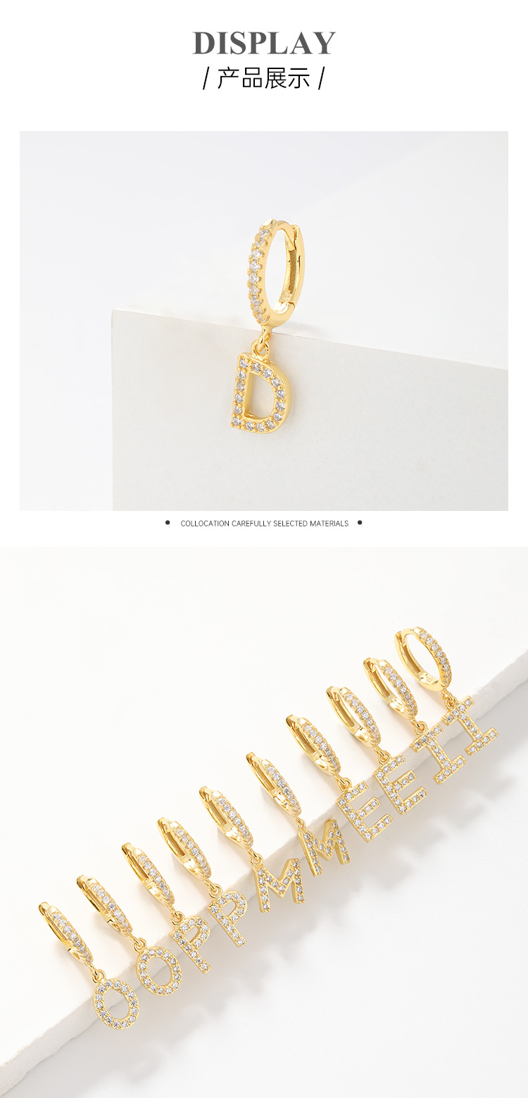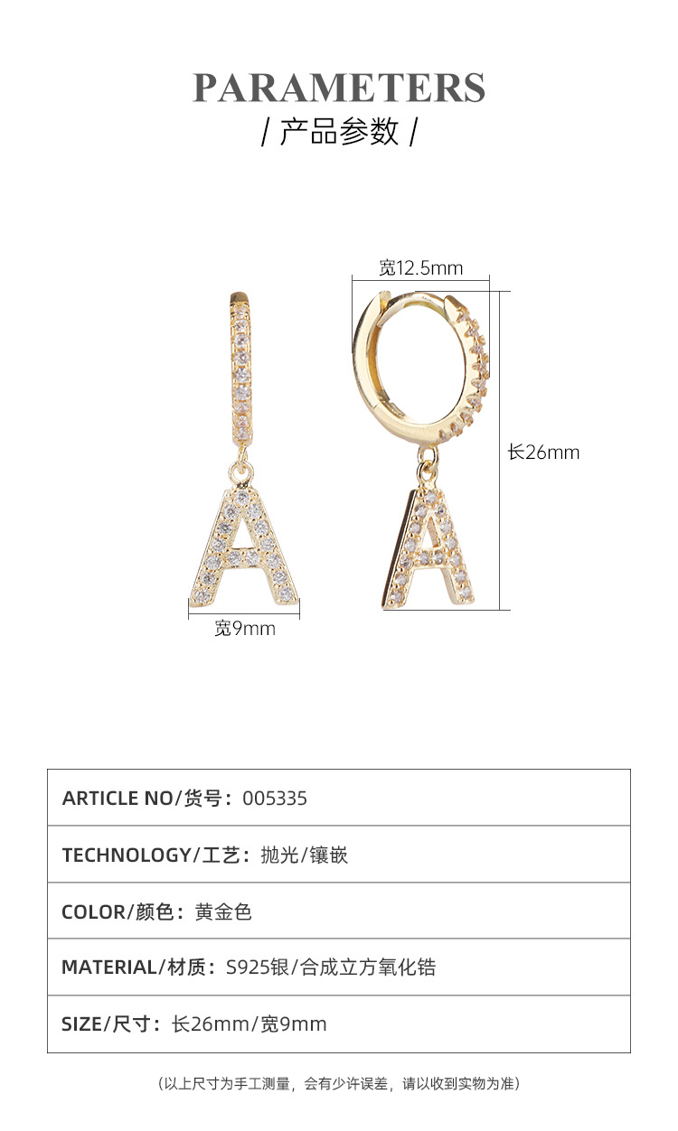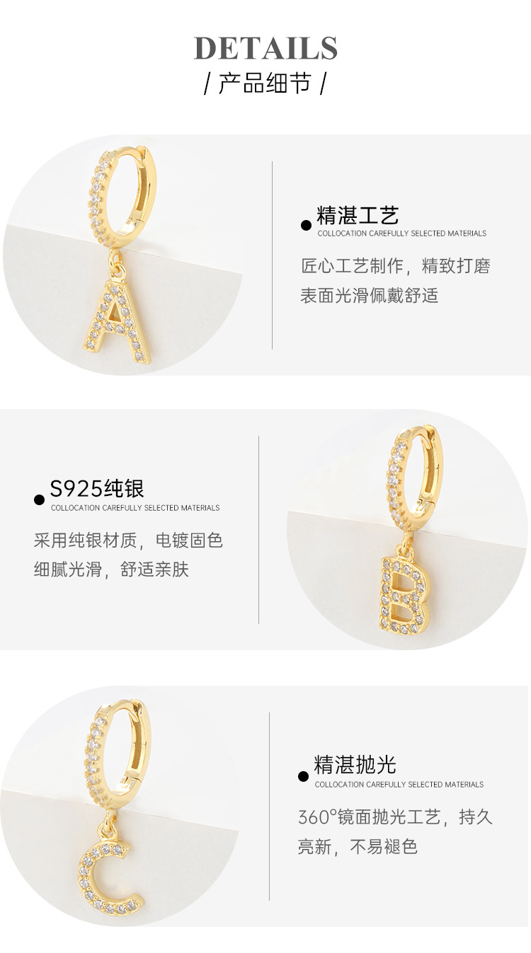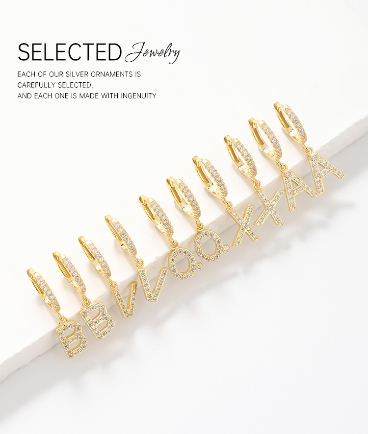 Amazon transfronterizo 925 plata esterlina 26 letras pendientes de estilo europeo y americano pendientes de orejas de orejas de orejas