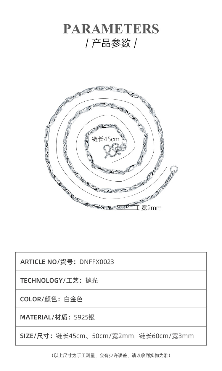 | Color | 2 mm de la cadena del tesoro 45 cm aproximadamente 10 g, 2 mm de la cadena del tesoro 50 cm aproximadamente 11 g, 3 mm de la cadena del tesoro 60 cm aproximadamente 25.5 g |