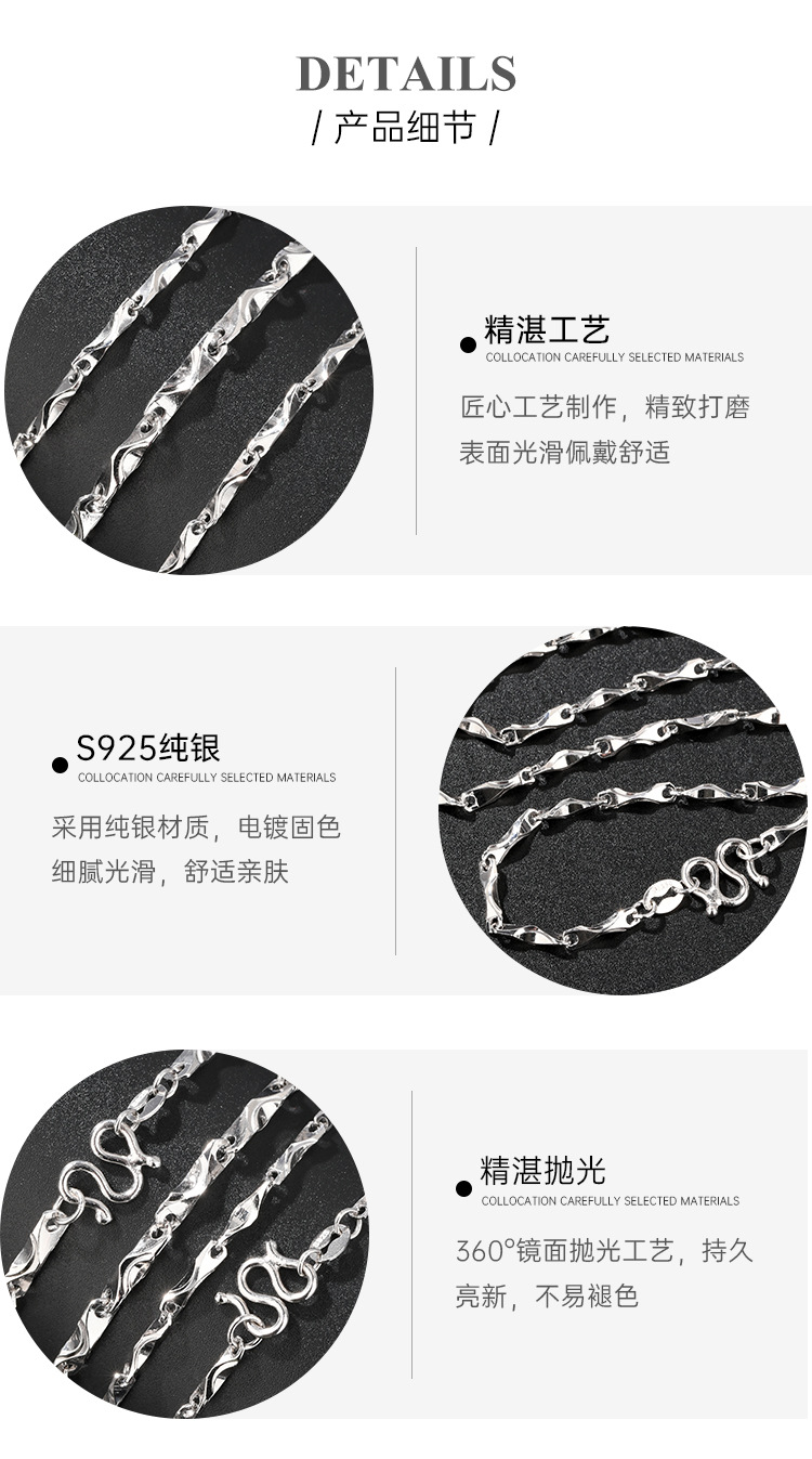 925 plata esterlina 3mm yuan collar de cadena de oro hombre sólido cadena de plata cadena de clavícula de hombre hip hop para enviar marido novio