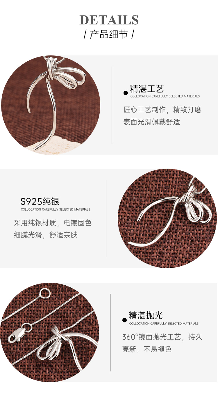 925 líneas de plata esterlina collar de arco de moda de verano femenina versátil in lujo ligero de alto nivel collar de collar de clavícula
