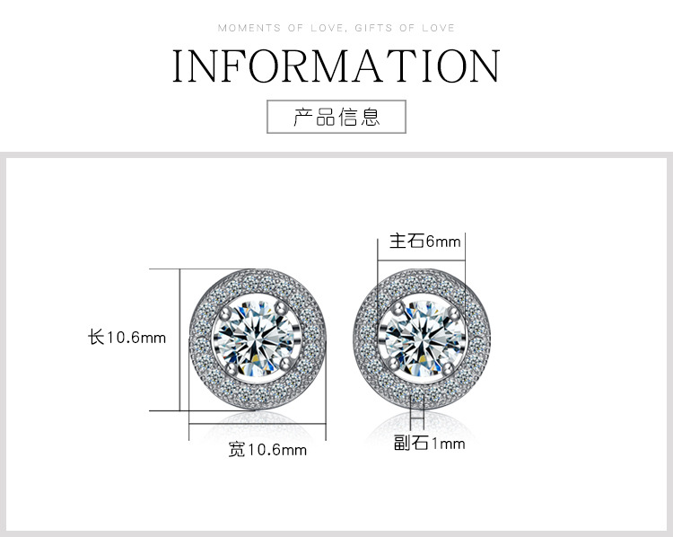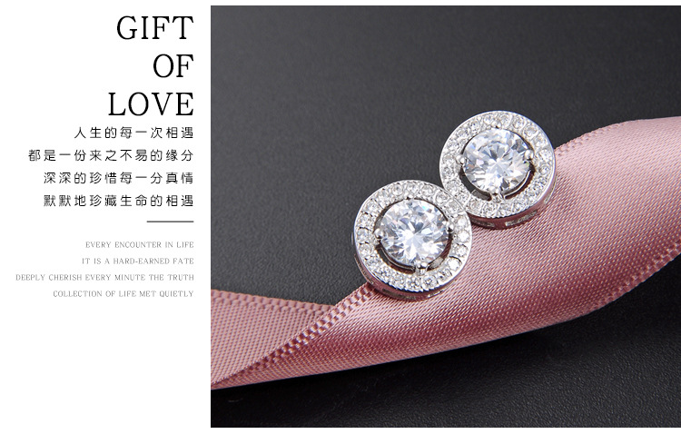 925 plata esterlina redonda pendientes de diamantes nicho femenino coreano temperamento simple de alta sensación de aretes de zircón envolvidos pendientes