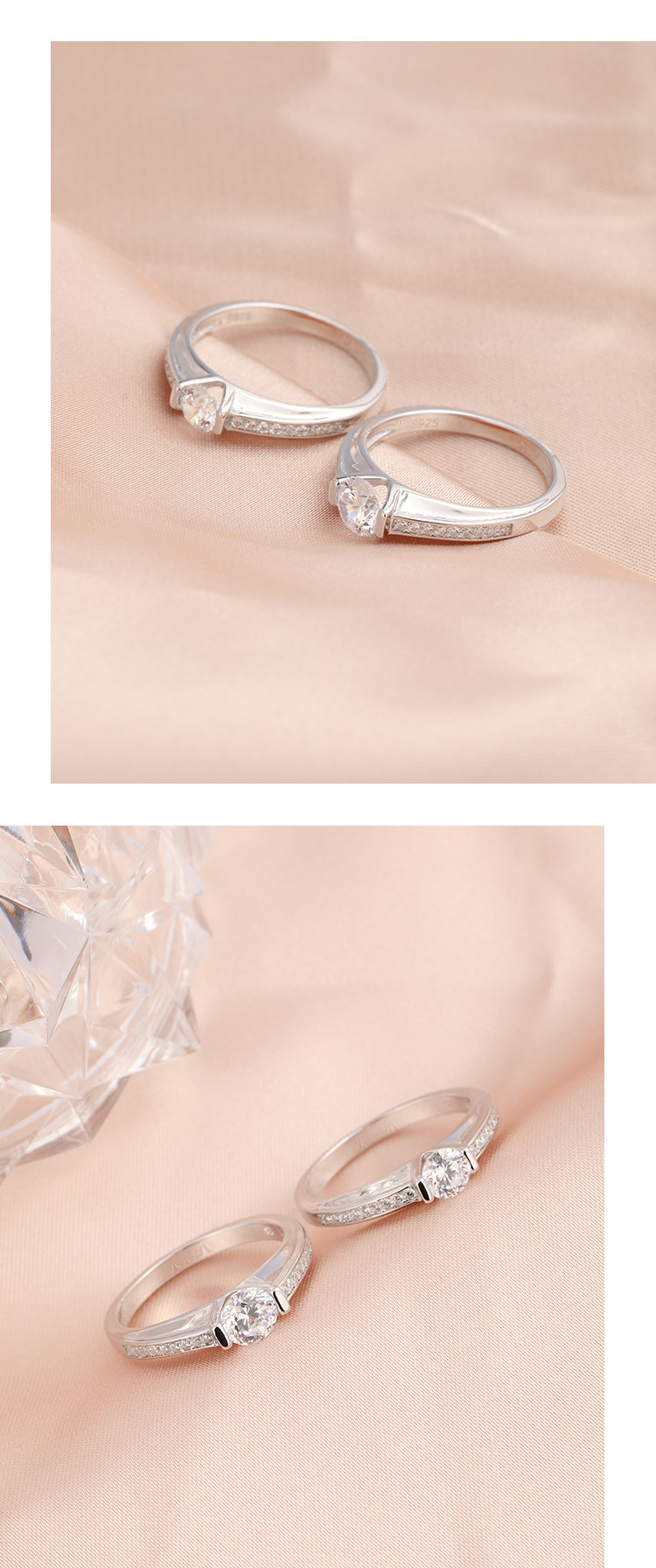 Anillo de zircón de diamante de plata 925 para mujeres anillo de pareja cerrado de matrimonio anillo de diamantes simulado regalo de novia