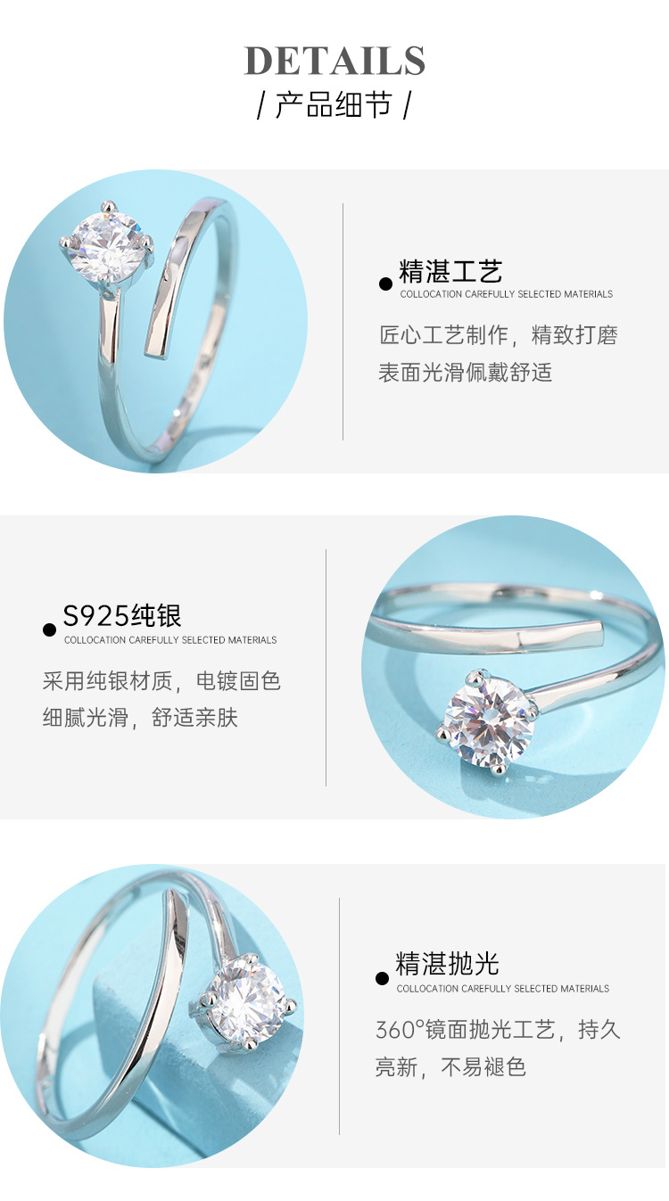925 anillo de diamante de plata esterlina para mujeres japonesas estilo coreano simple nicho de diseño de alto nivel sensación de anillo de zircon apertura ajustable