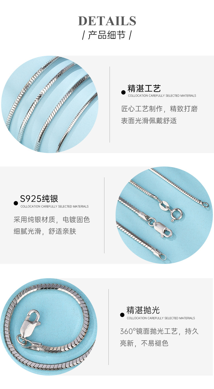Collar de cadena de hueso de serpiente personalizado 925 joyería de plata esterlina procesamiento colgante de cadena de clavícula para dibujar una muestra de plata hecha a medida