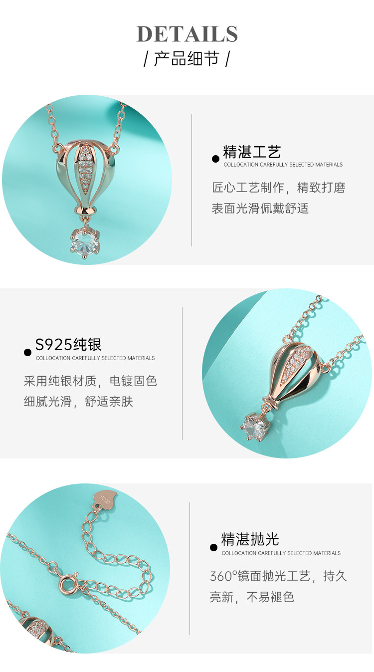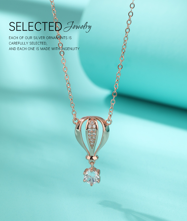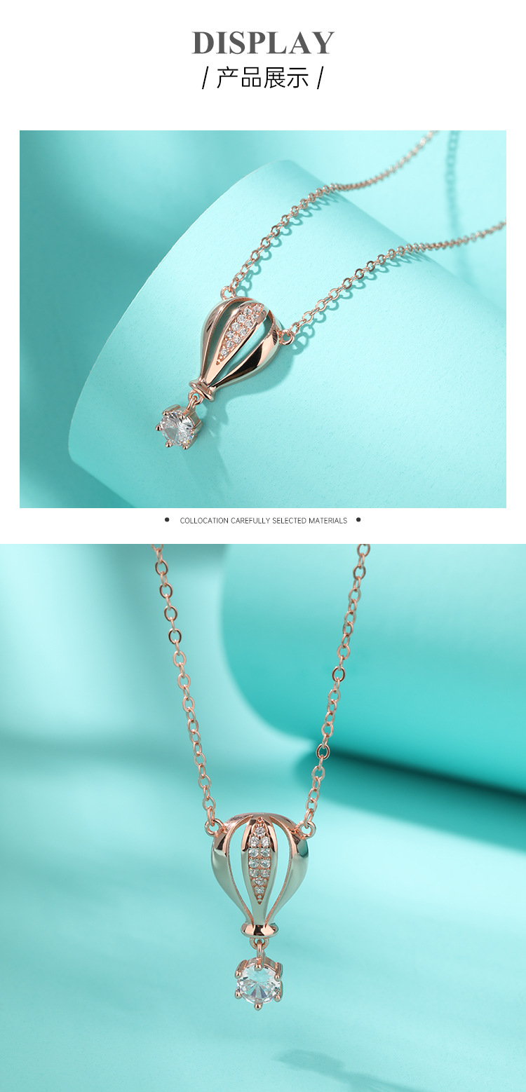 Collar de plata esterlina 925 nicho de diseño femenino estilo japonés coreano simple oro rosa diamantes colgante de globo caliente cadena clavícula