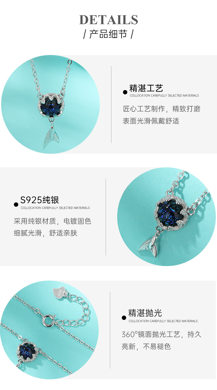 925 plata esterlina collar de cola de pescado nicho ligero diseño de cadena clavícula sirena temperamento collar 520 para enviar a la novia