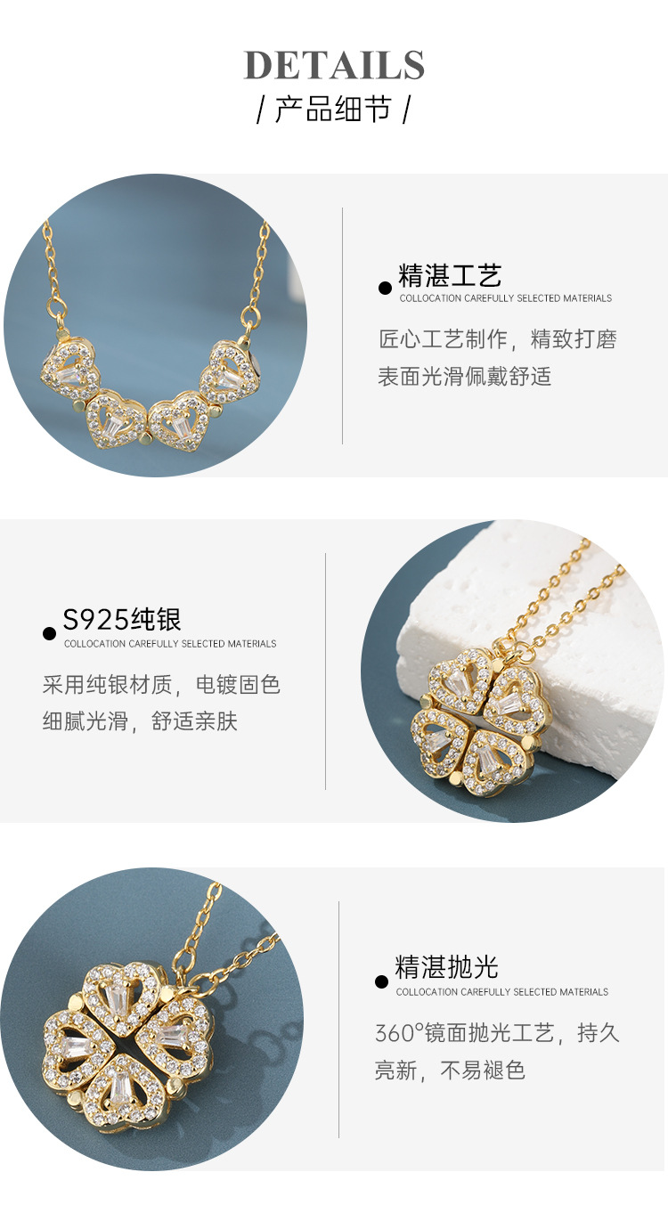 Lucky Clover collar de plata esterlina 925 ligera nicho de alto nivel colgante de amor un uso de cadena clavícula