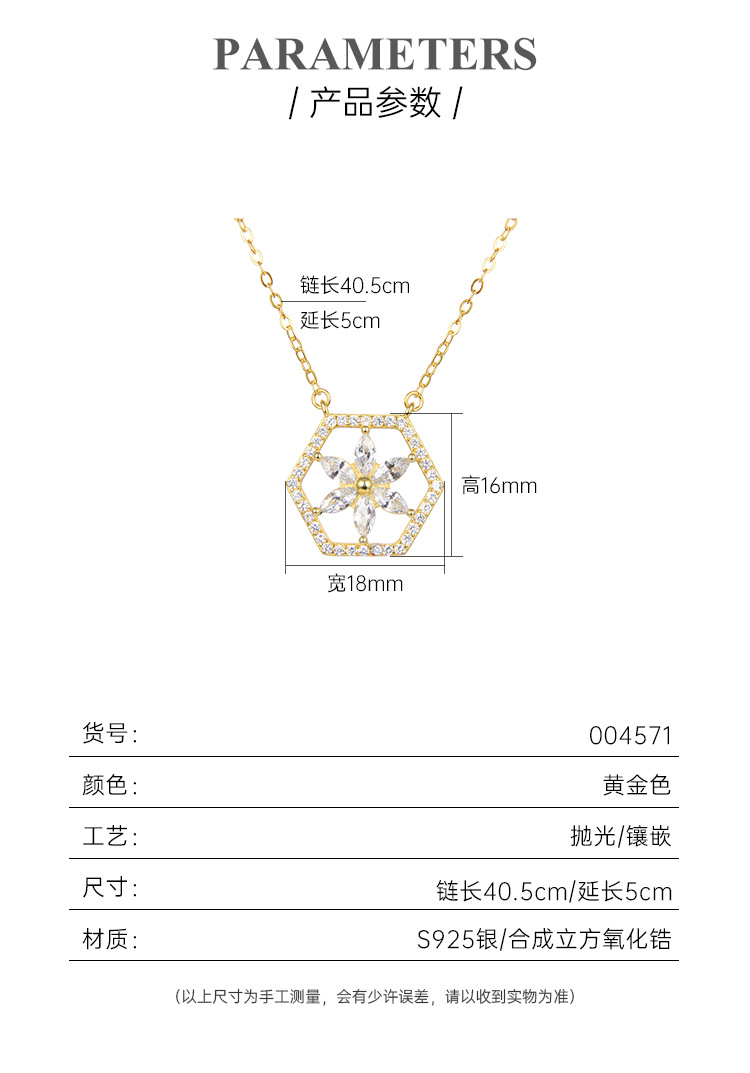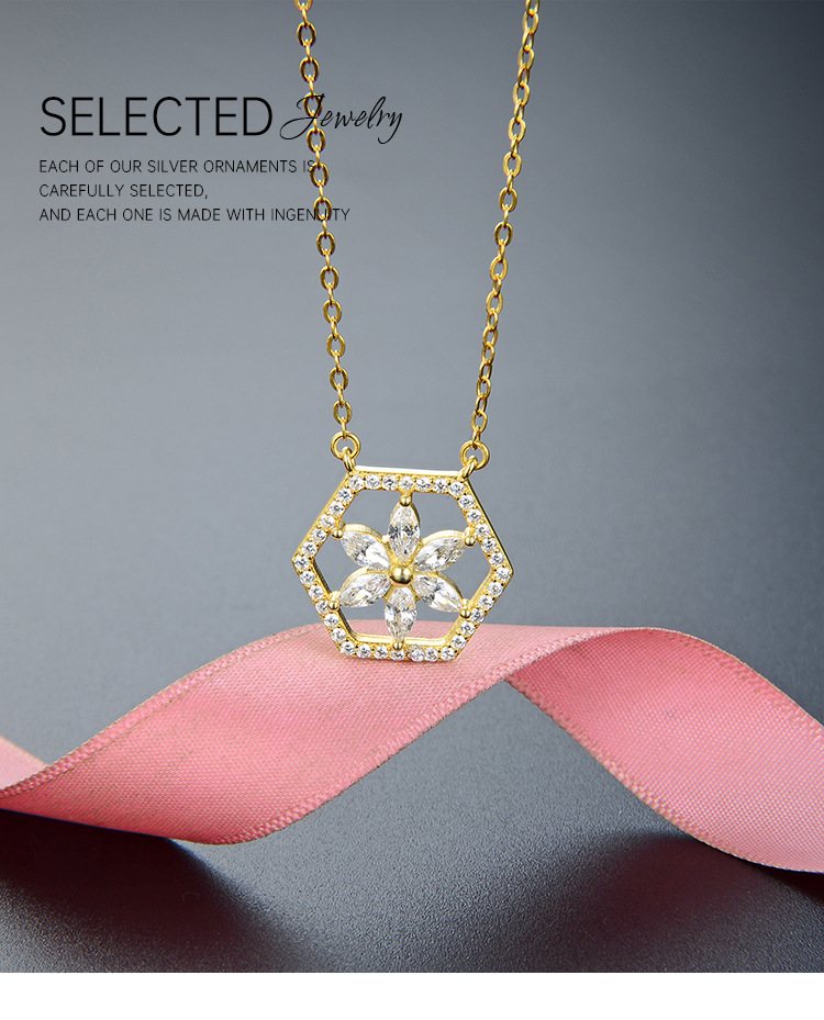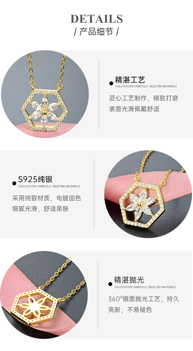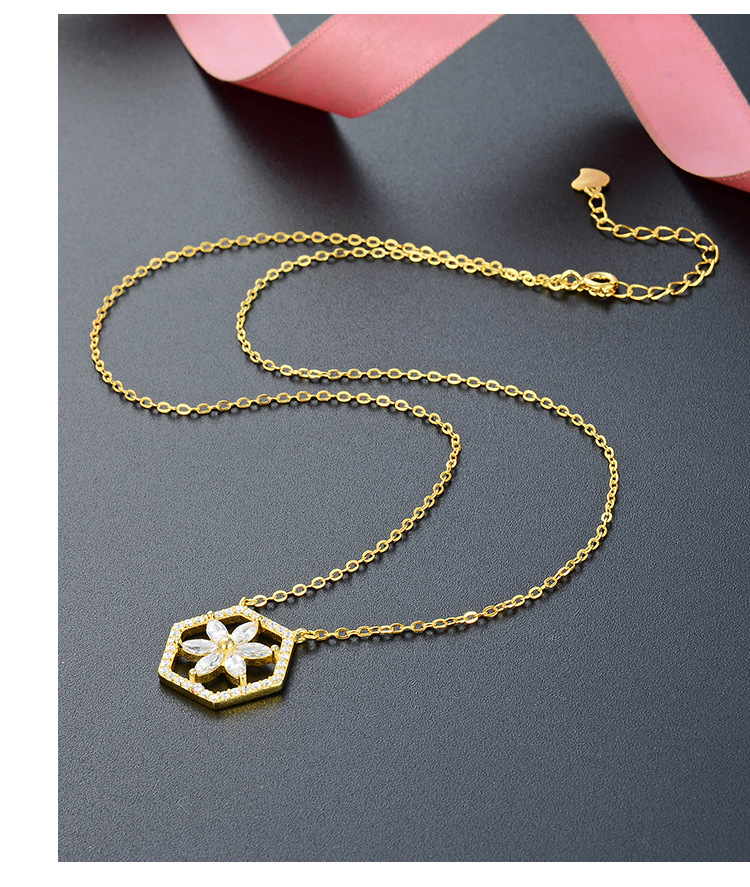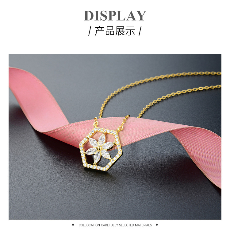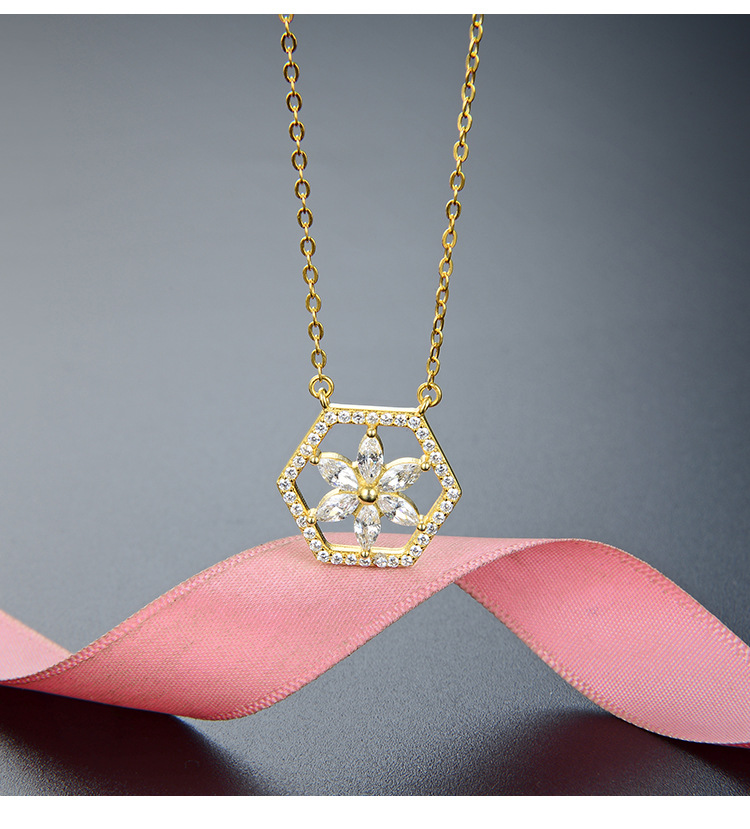 925 plata esterlina collar de diamantes hexagonal de lujo ligero nicho diseño de alta sensibilidad colgante de flores de cadena de clavícula