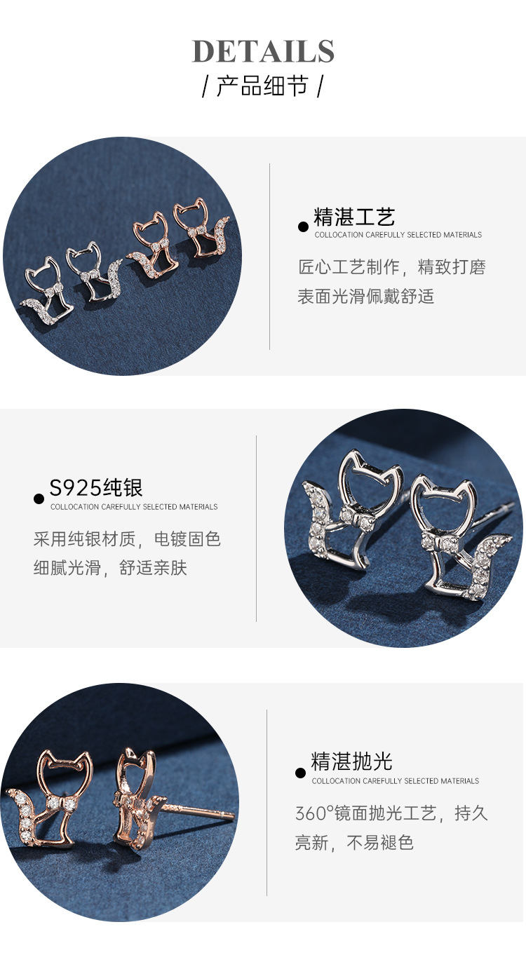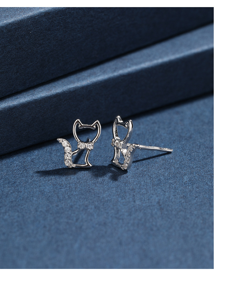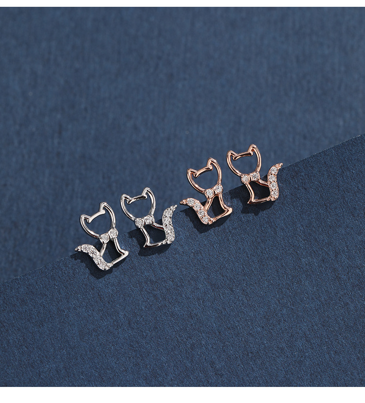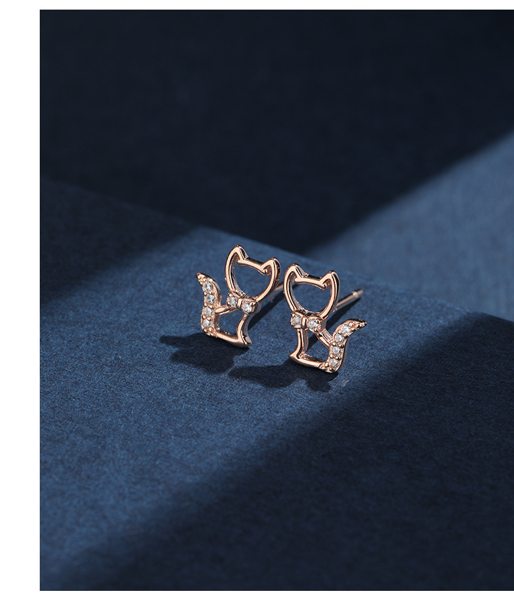 Agujero de zorro orejas de plata esterlina 925 exquisita y pequeña orejas de agujero de orejas personalidad temperamento micro orejas de piedra de vidrio