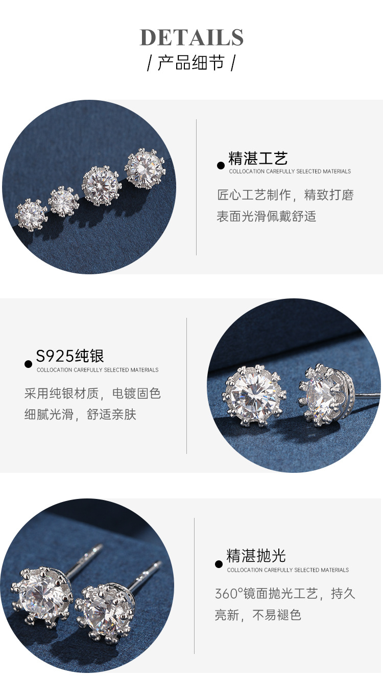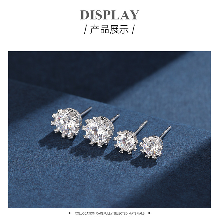 925 plata esterlina corona zircón pernos de orejas para mujeres pequeñas y exquisitas orejas agujeros de orejas pernos de hueso de orejas nicho aretes de alta calidad