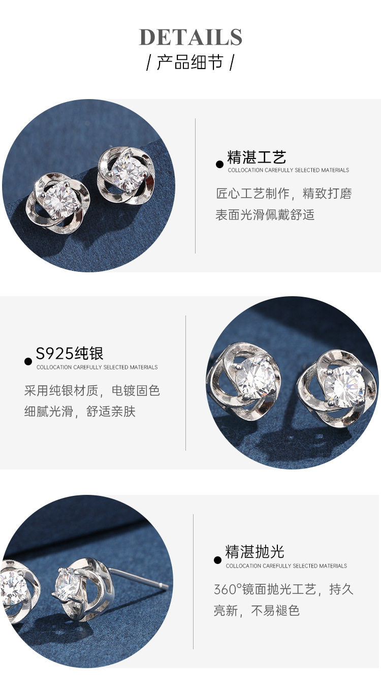 Simple zircon tetrafolia pernos de plata esterlina 925 nicho delicado aretes de alta sensación para mujeres pequeños aretes de agujeros de orejas