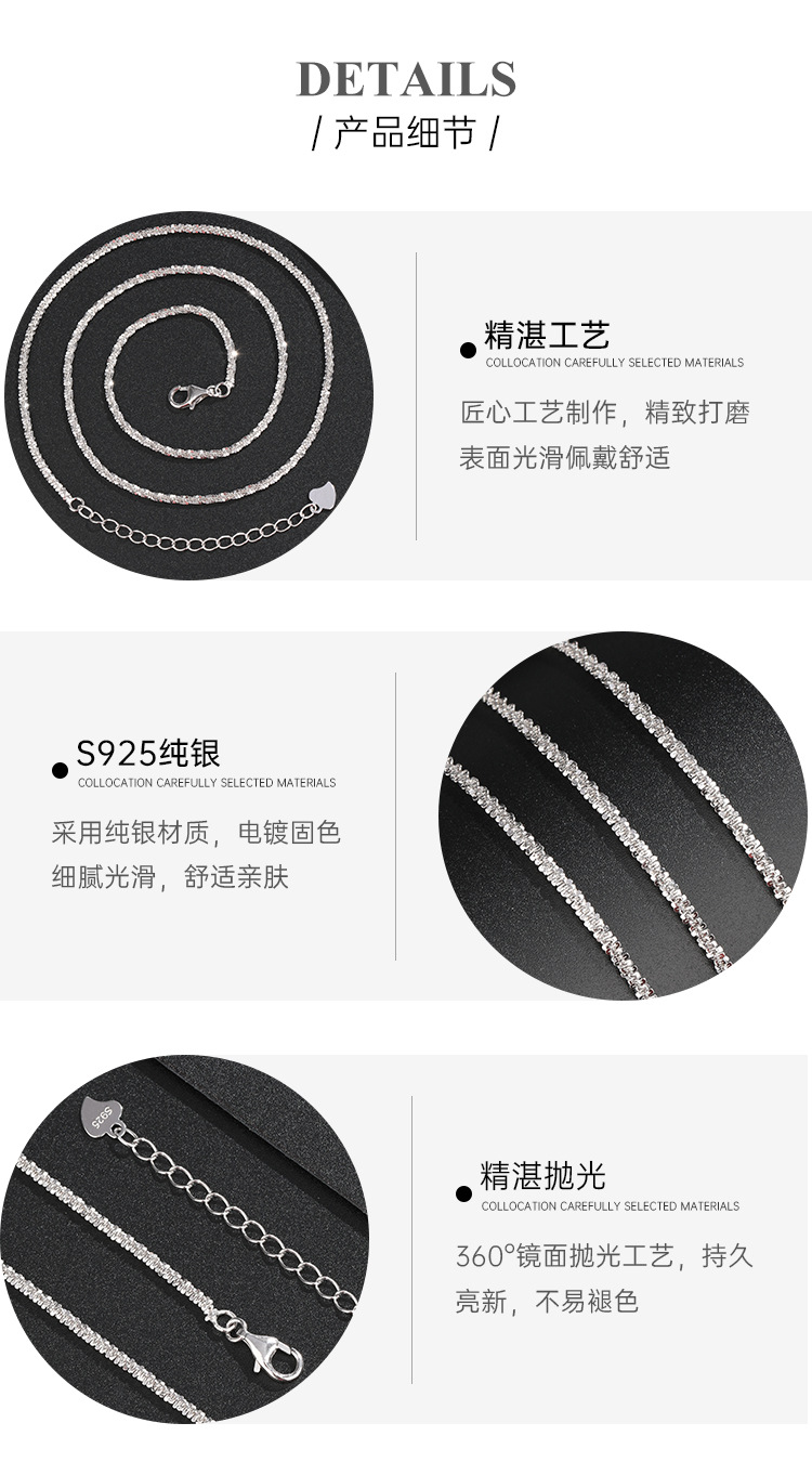 Collar de gypsophila de plata de ley 925, cadena de clavícula brillante de nicho femenino, cadena de coliflor de sentido avanzado de temperamento