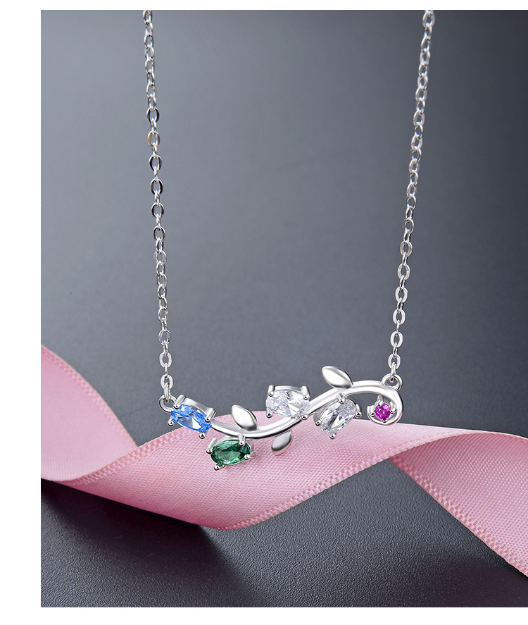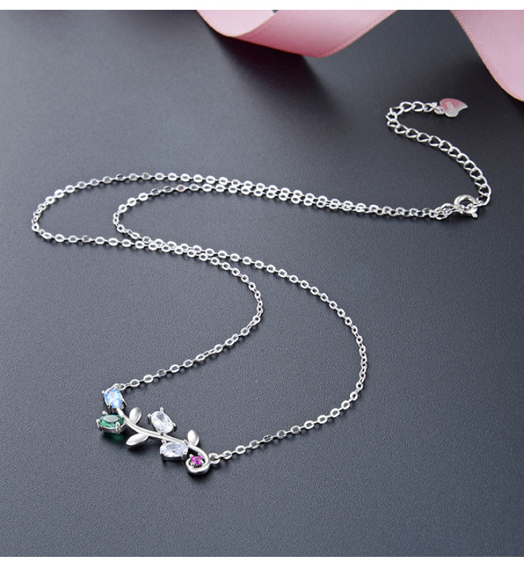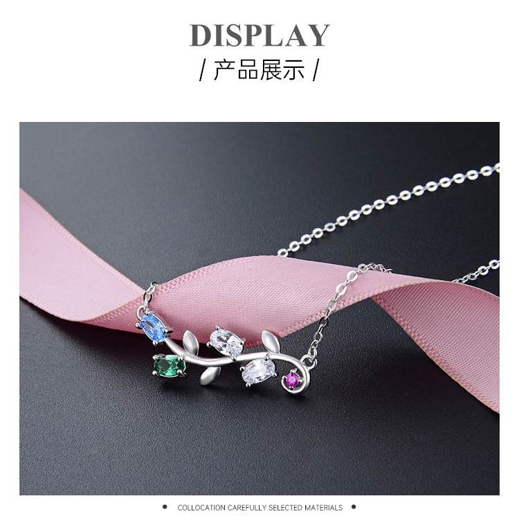 S925 plata esterlina collar de hoja de olivo de las mujeres micro incrustaciones de circón nicho diseño de alta calidad de la cadena de clavícula todo partido de la joyería
