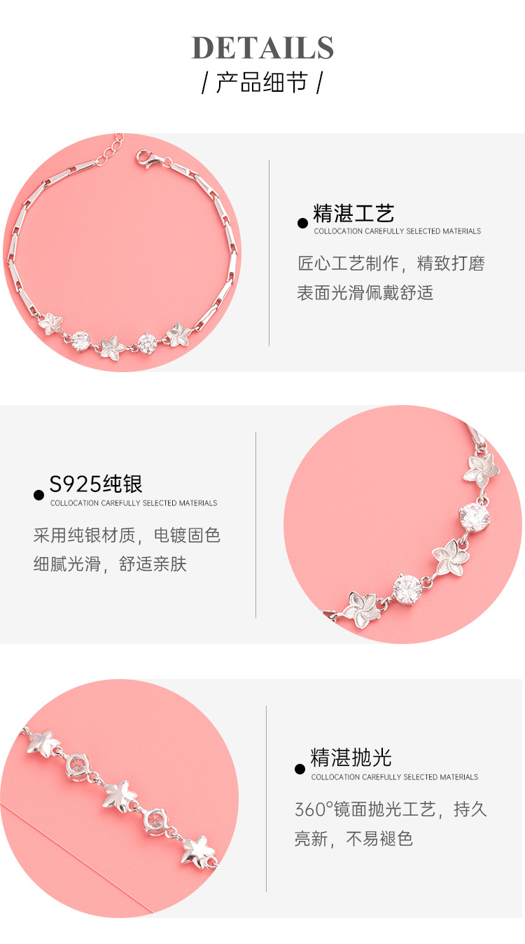 Pulsera de trébol de cinco hojas con incrustaciones de diamantes mujer 925 plata de ley luz lujo nicho exquisito sentido de alta gama joyería de flores para novias y novias