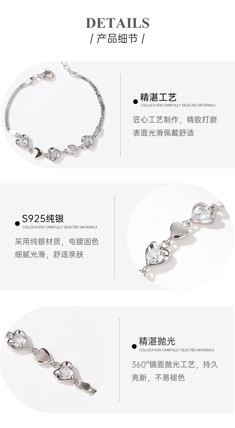 S925 plata esterlina pulsera en forma de corazón para las mujeres luz lujo nicho diseño alto sentido 2024 nuevo estilo frío estilo novias pulsera