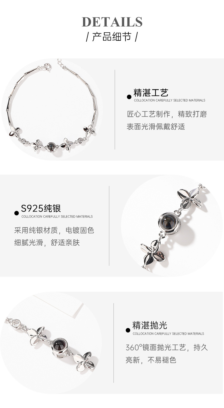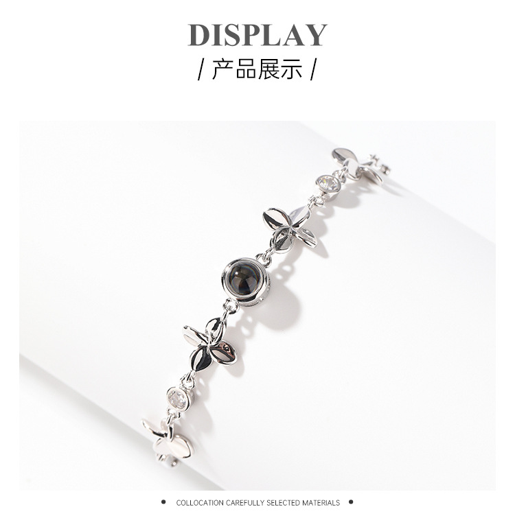 100 idiomas te amo proyección trébol 925 pulsera de plata esterlina luz femenina lujo nicho diseño regalo para novia