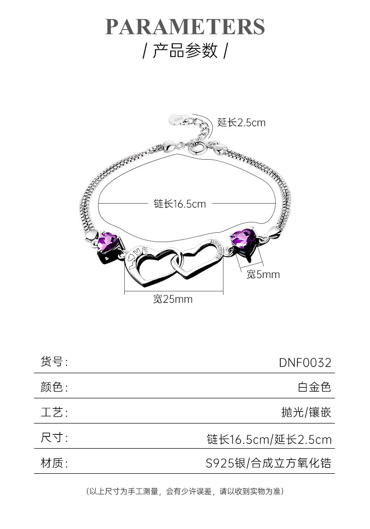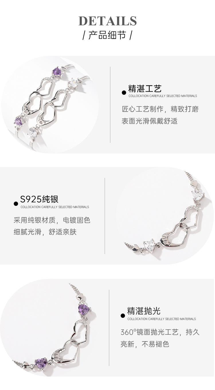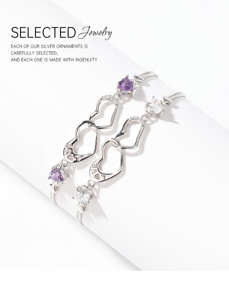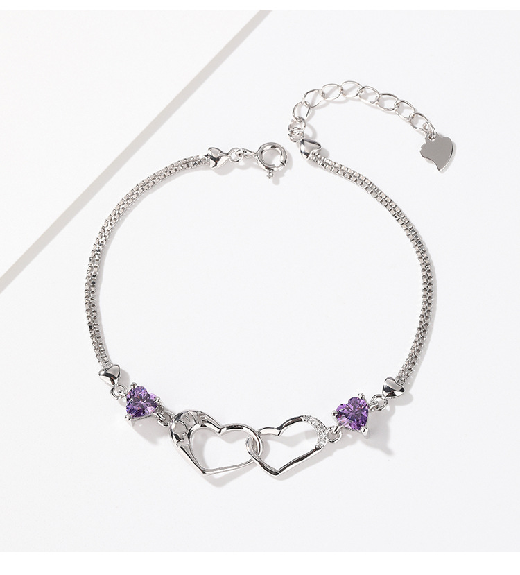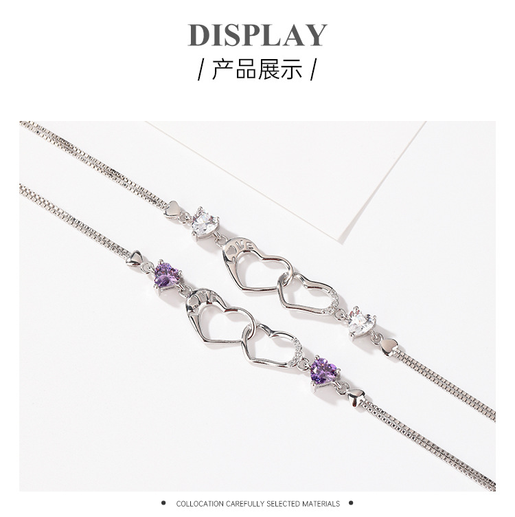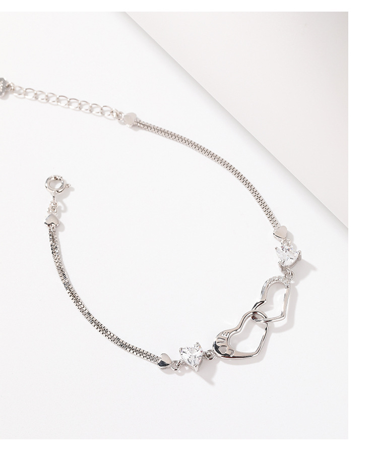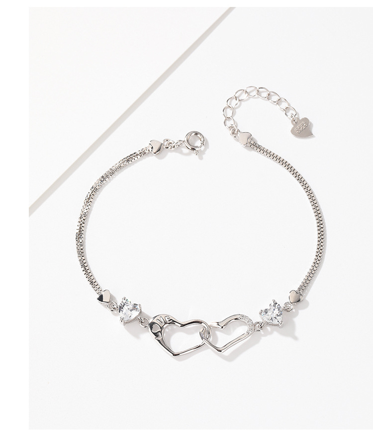 S925 plata esterlina diamante-incrustado doble amor pulsera mujer luz lujo nicho exquisito de alto grado temperamento todo partido pulsera para novia