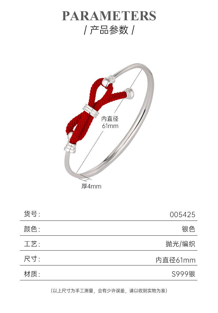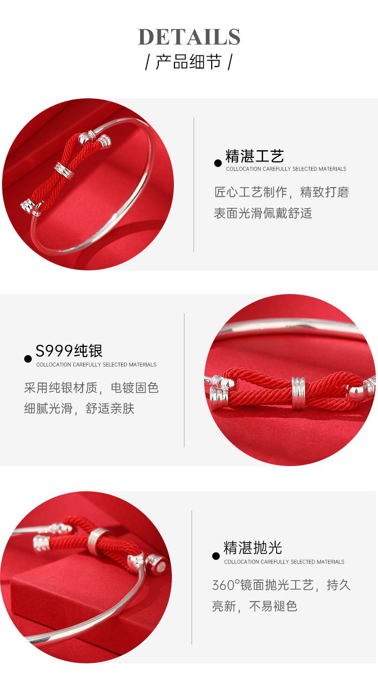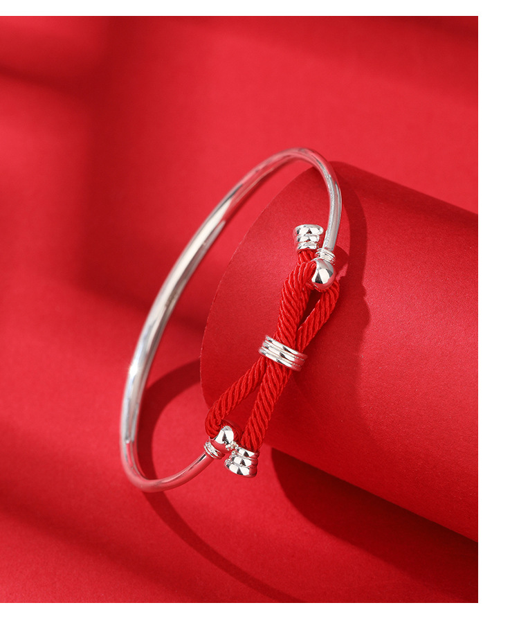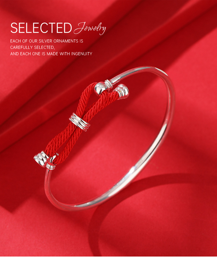 Pulsera de plata para mujer 999 plata esterlina cuerda roja arco luz lujo nicho diseño llano anillo pulsera de plata para novia