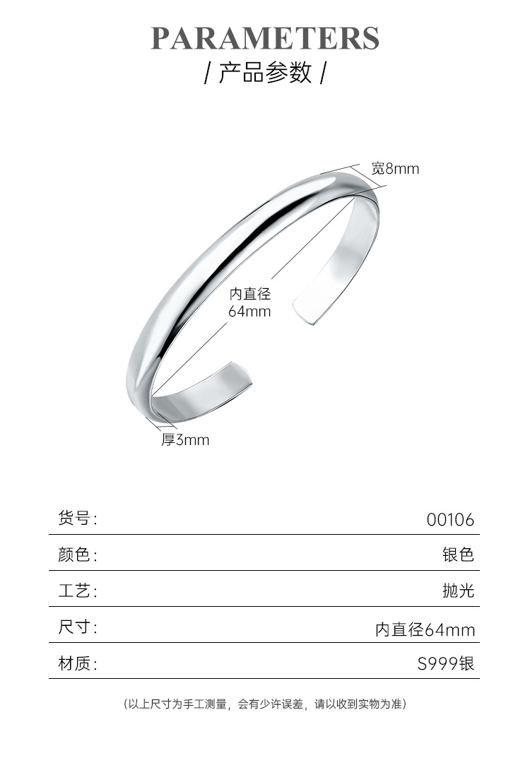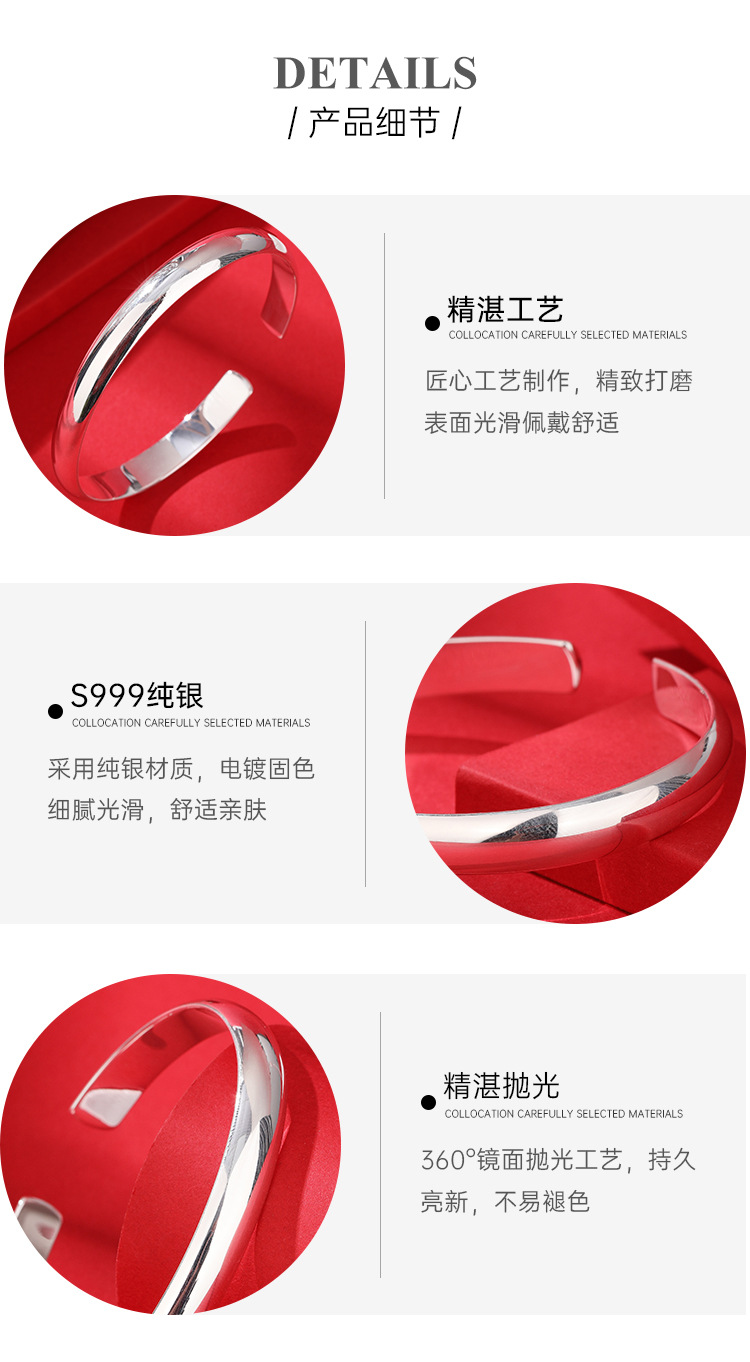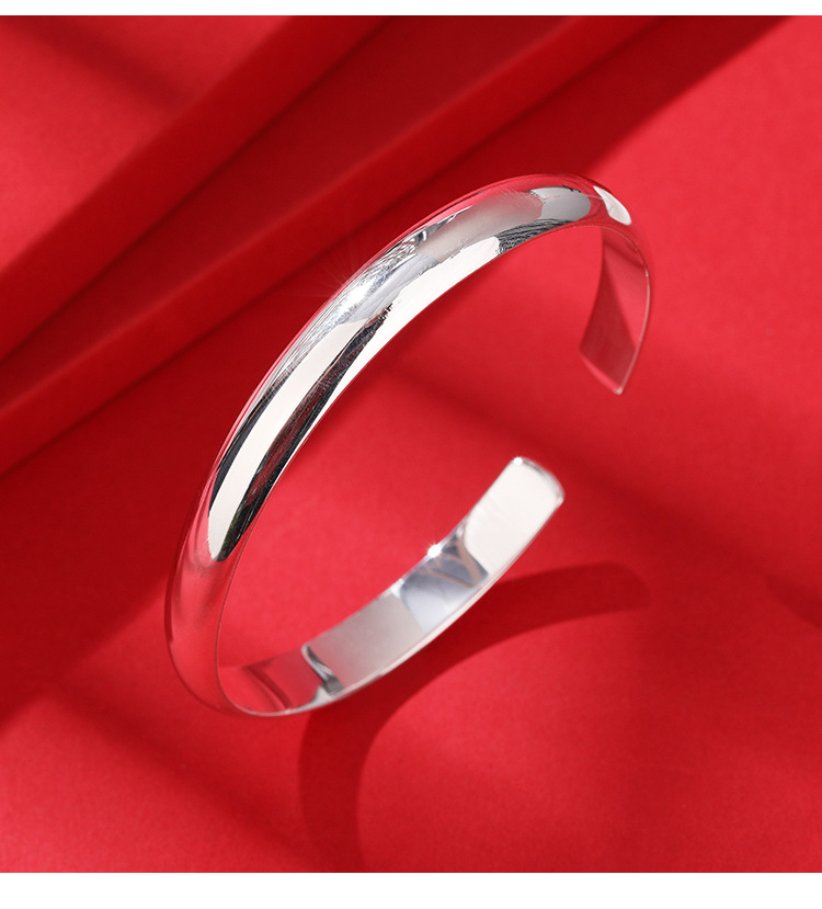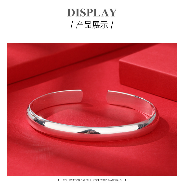 Pulsera de plata brillante para mujer 999 plata esterlina madre clásico abierto anillo liso sólido imperial concubina pulsera de plata pura para ancianos