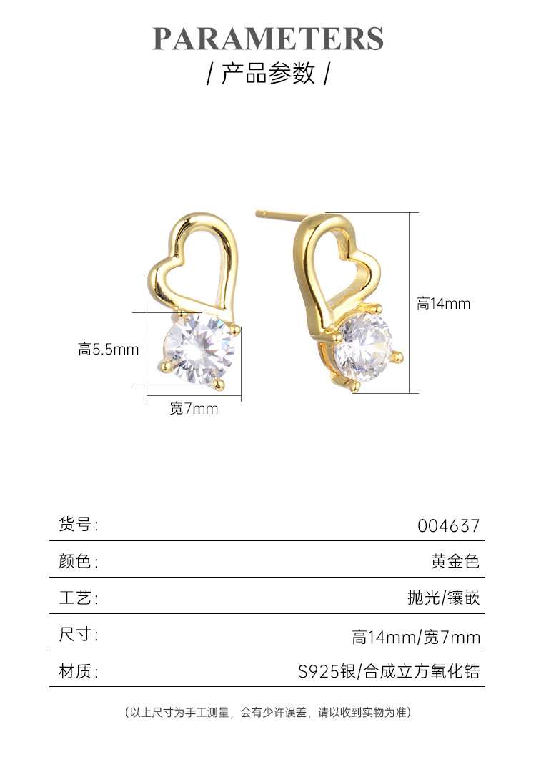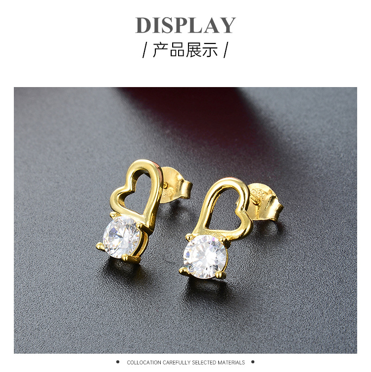 Diamante circón pendientes encantadores para las mujeres 925 plata esterlina nicho diseño temperamento transfronterizo pendientes melocotón corazón pendientes de plata