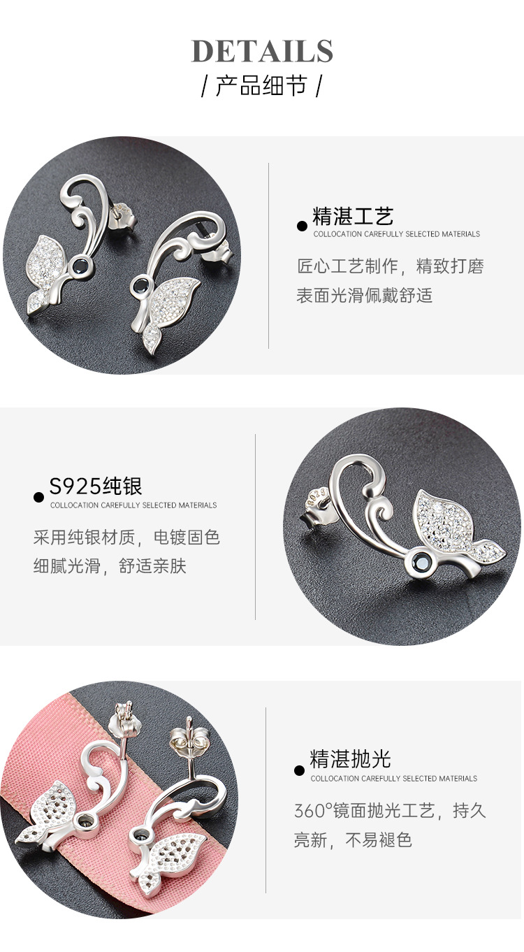 Pendientes de mariposa para mujer 925 plata esterlina diseño de nicho 2024 nuevos pendientes de diamantes completos ins elegantes pendientes de alta calidad