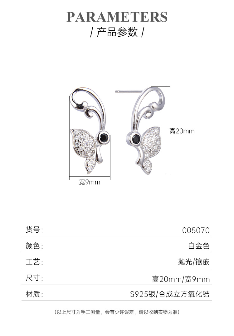 | Color | Pendientes de mariposa-con tapones de plástico para los oídos |