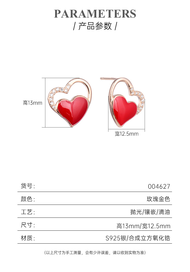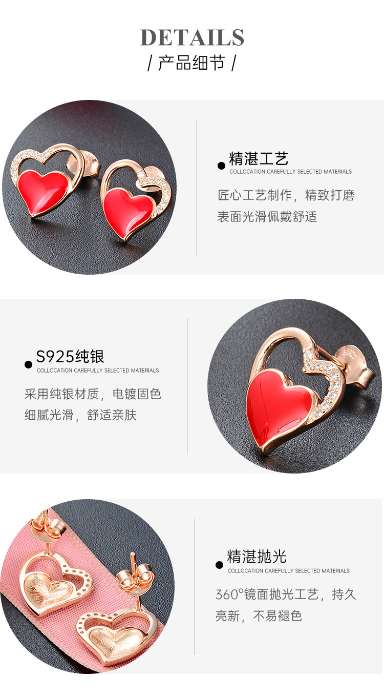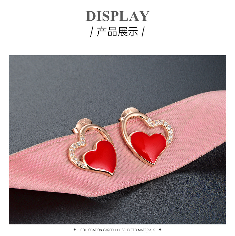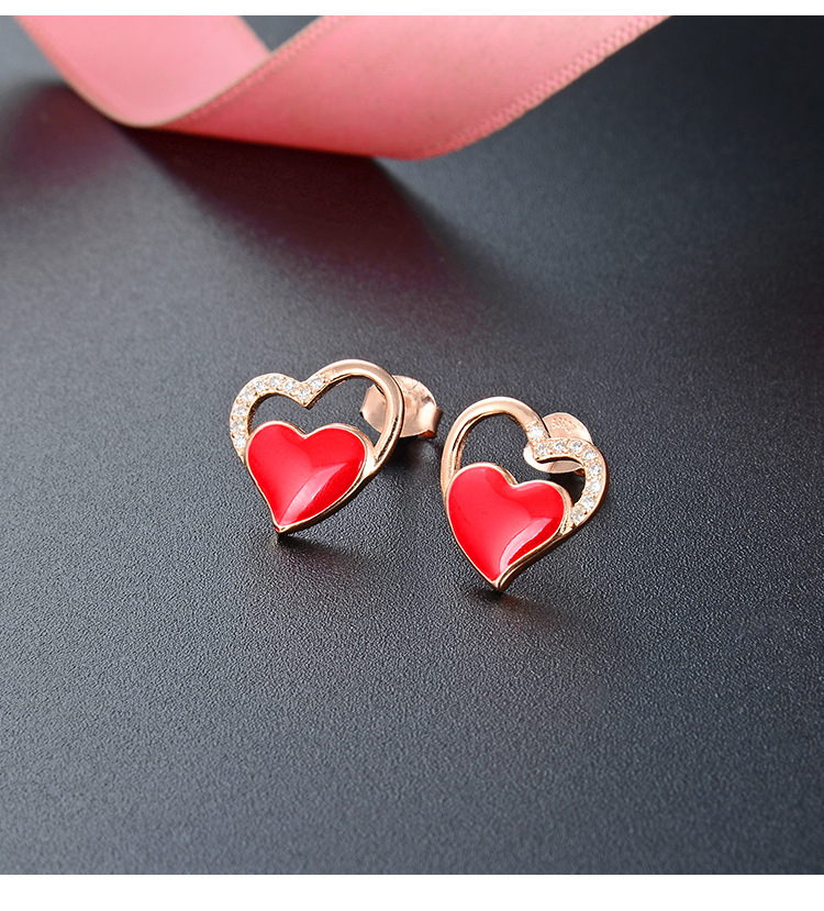 | Color | Pendientes de oro rosa corazón-con tapones de plástico |