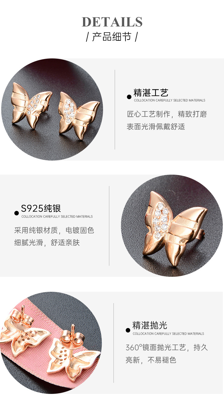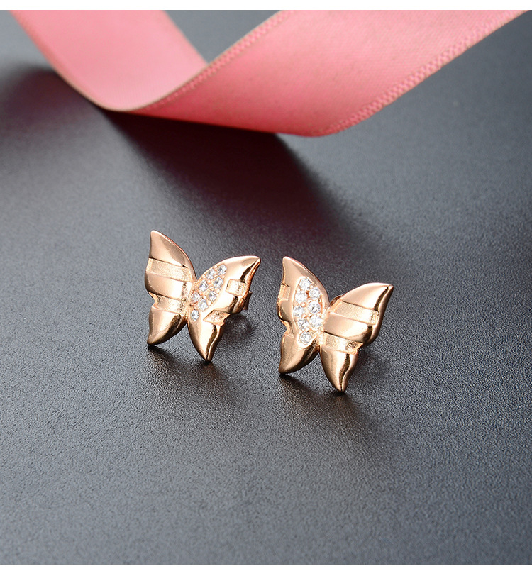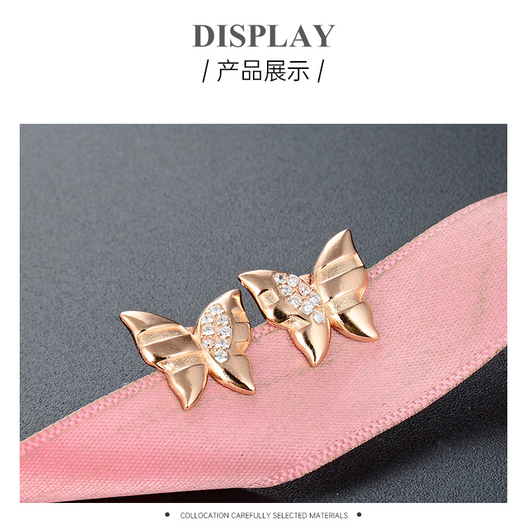 Oro Rosa mariposa Stud pendientes para mujeres 925 plata esterlina 2024 nuevo nicho diseño temperamento pendientes ins estilo pendientes