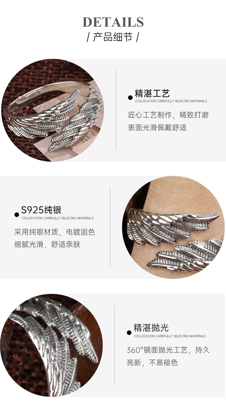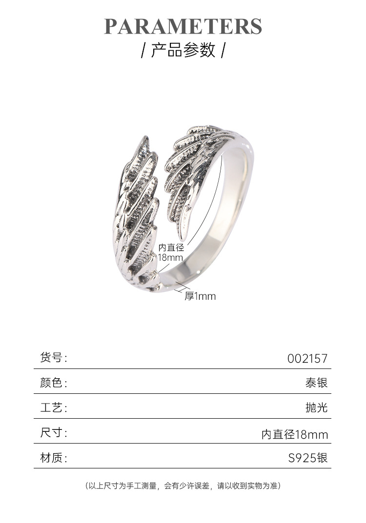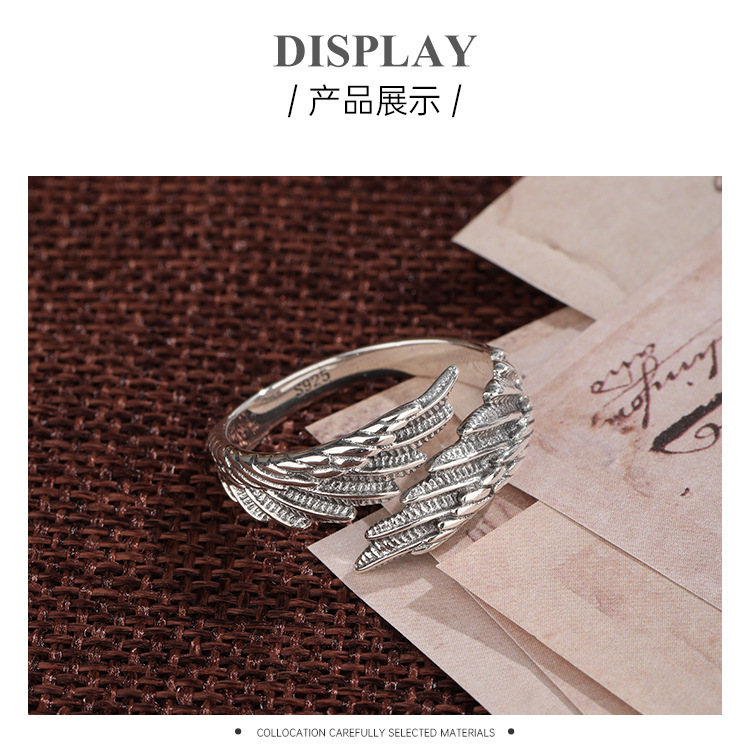 Cross-border Nueva joyería alas anillo femenino 925 plata esterlina nicho diseño personalizado anillo abierto de los hombres anillo de dedo índice