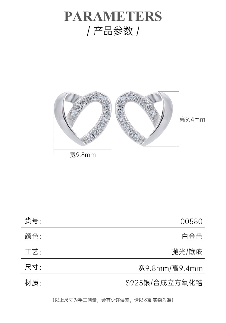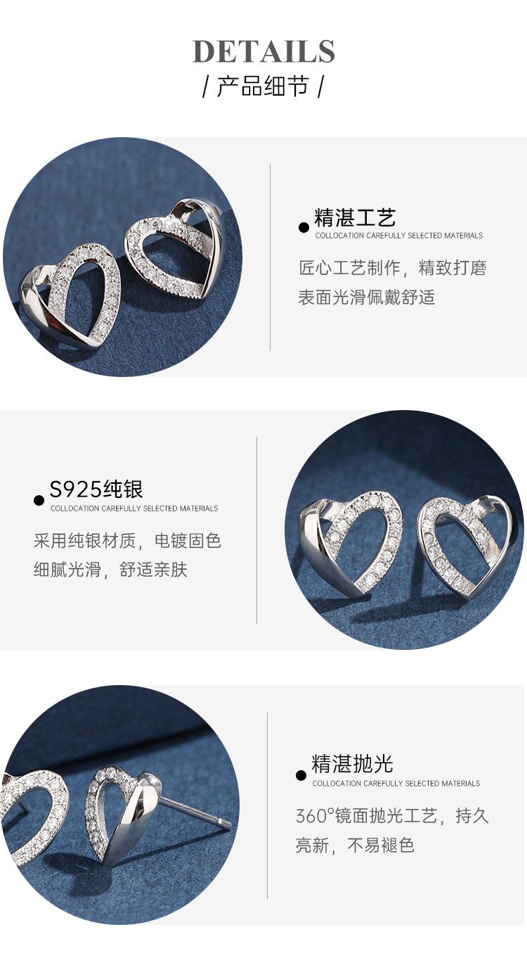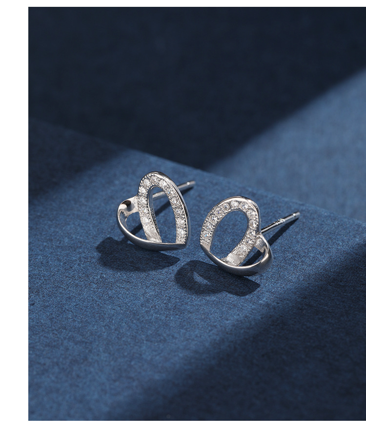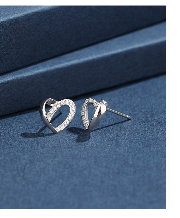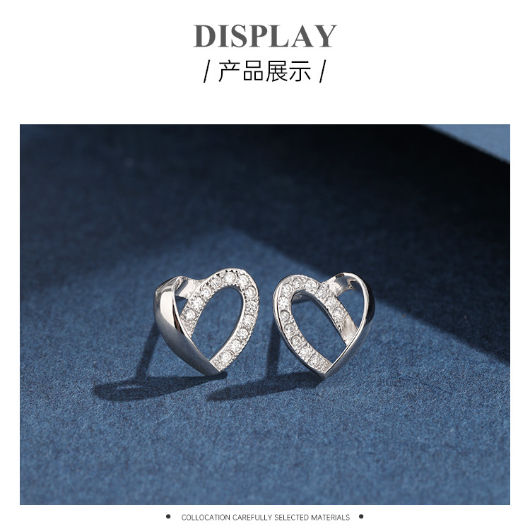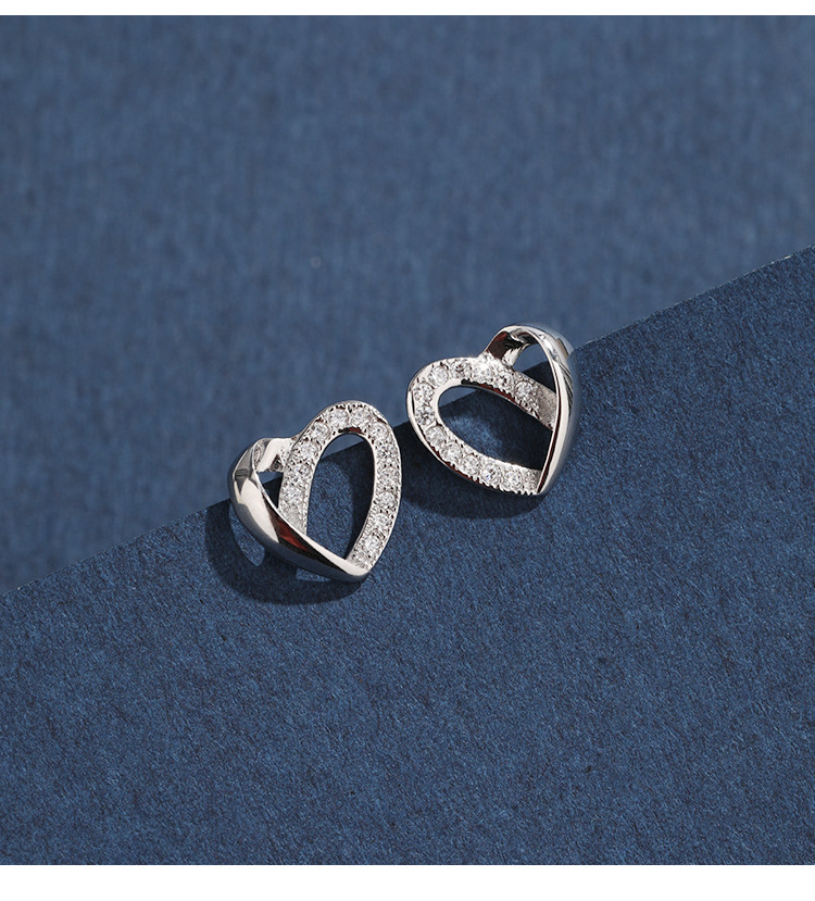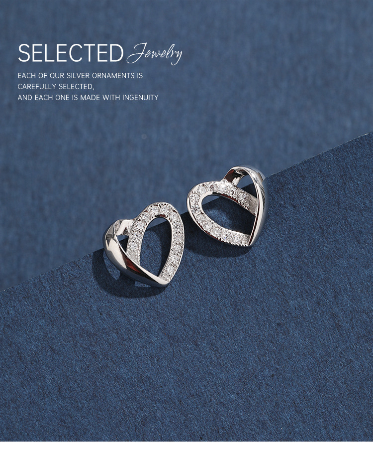 Pendientes de diamantes incrustados en forma de corazón para mujeres Pendientes de alto grado de nicho de lujo ligero de Plata de Ley 925 exquisitos pendientes de temperamento en forma de corazón simples