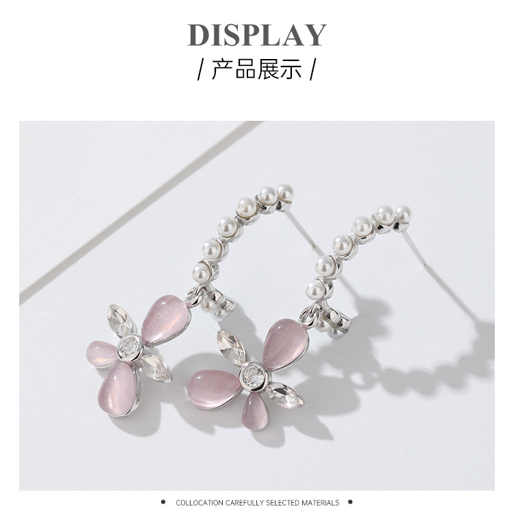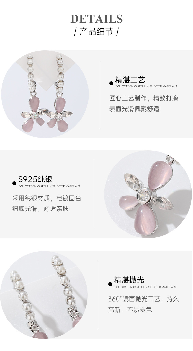 Pendientes de perlas de flores para mujeres 925 nicho de plata esterlina 2024 nuevos pendientes de estilo de alta calidad temperamento de lujo pendientes largos
