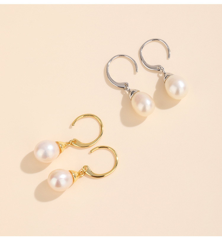 Aretes de perlas de agua fresca de plata 925 diseñados de nicho simple pendientes de aire frío lujoso ligero de alta calidad aretes