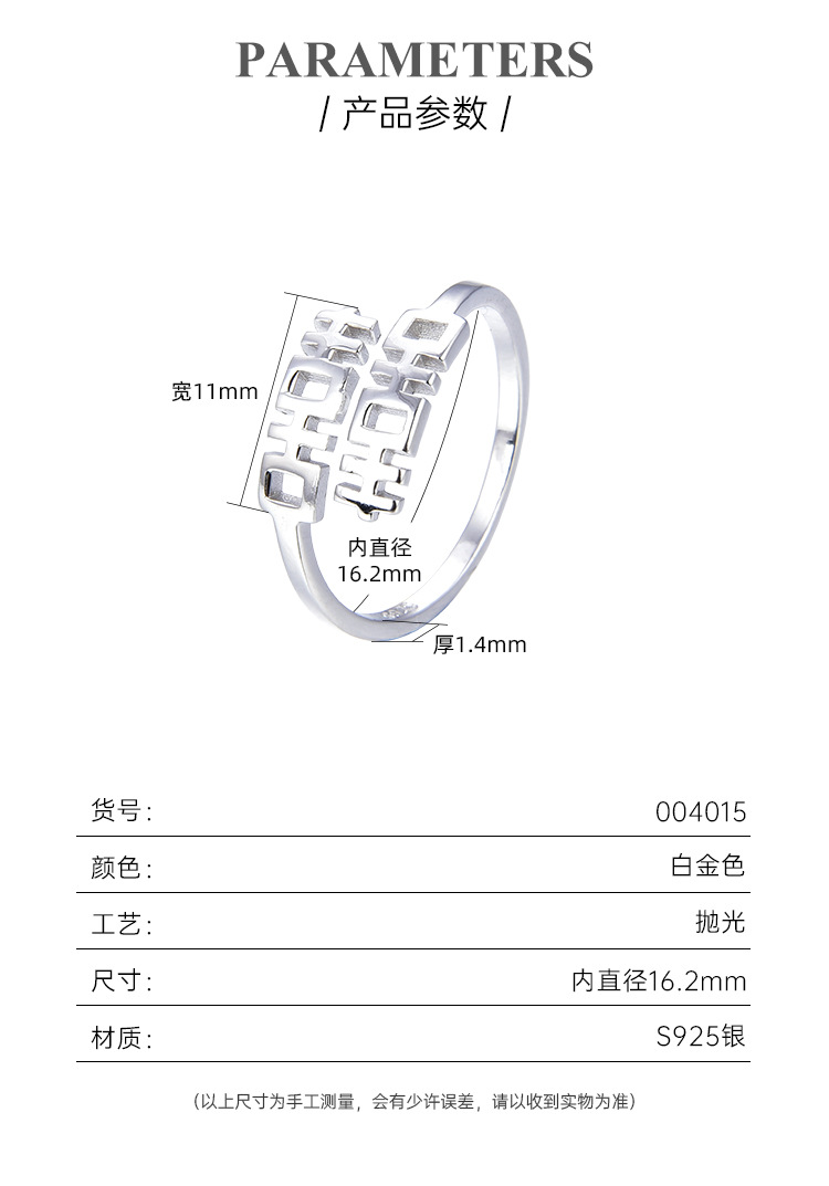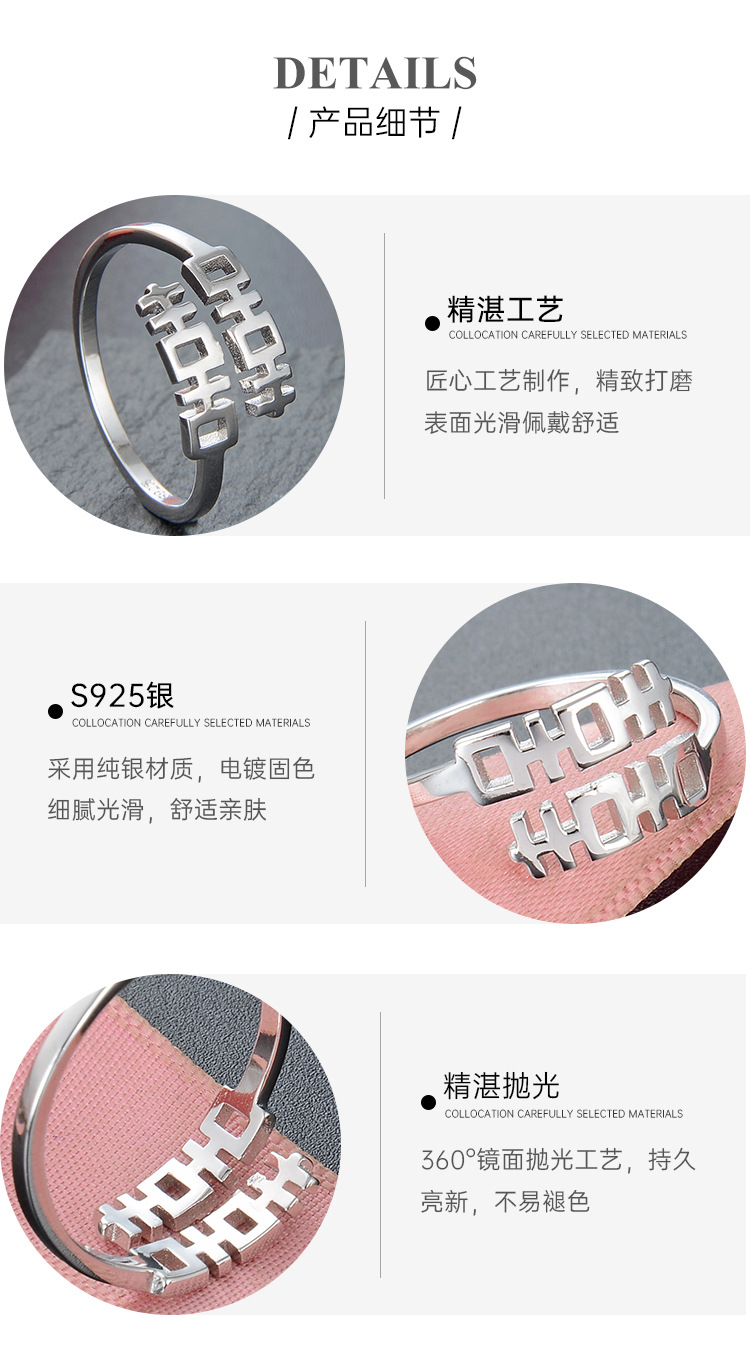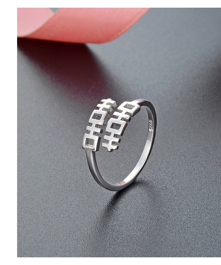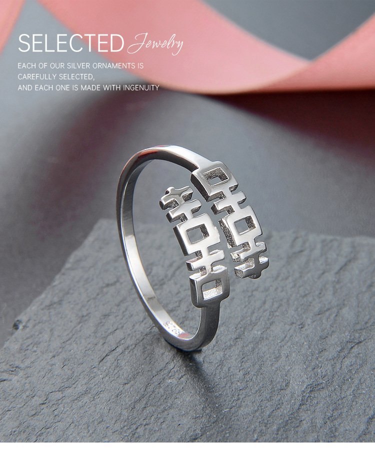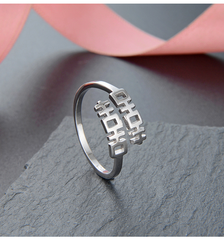 S925 plata esterlina doble felicidad anillo mujer personalidad abierta estilo chino retro chic anillo de dedo índice nicho anillo simple