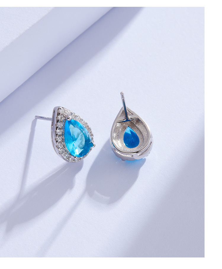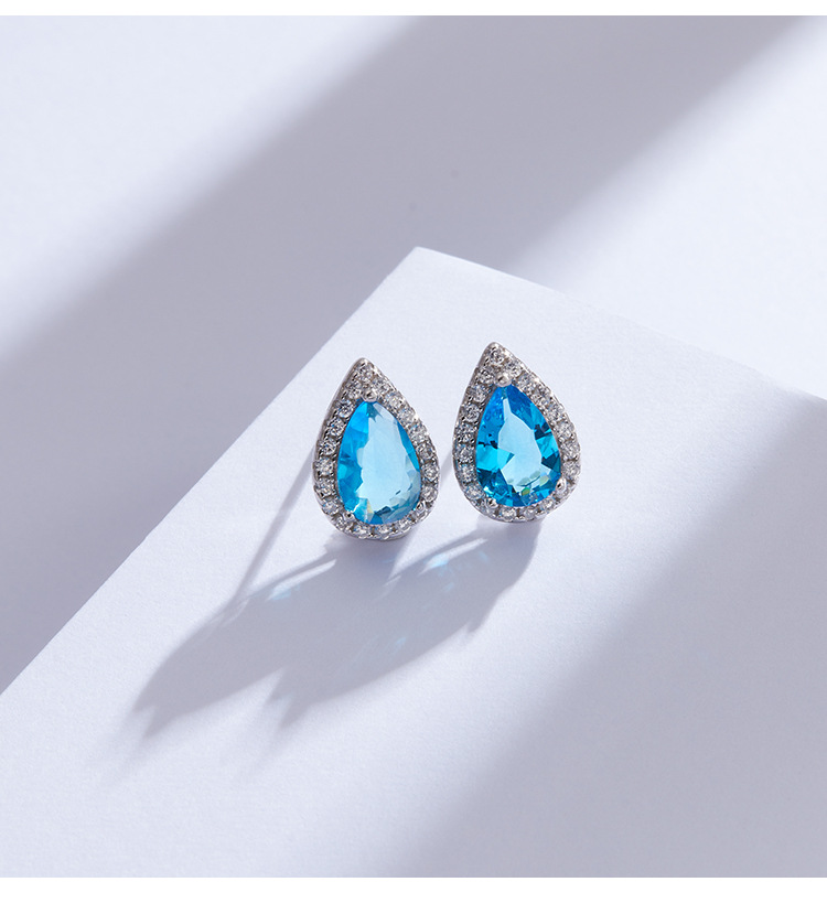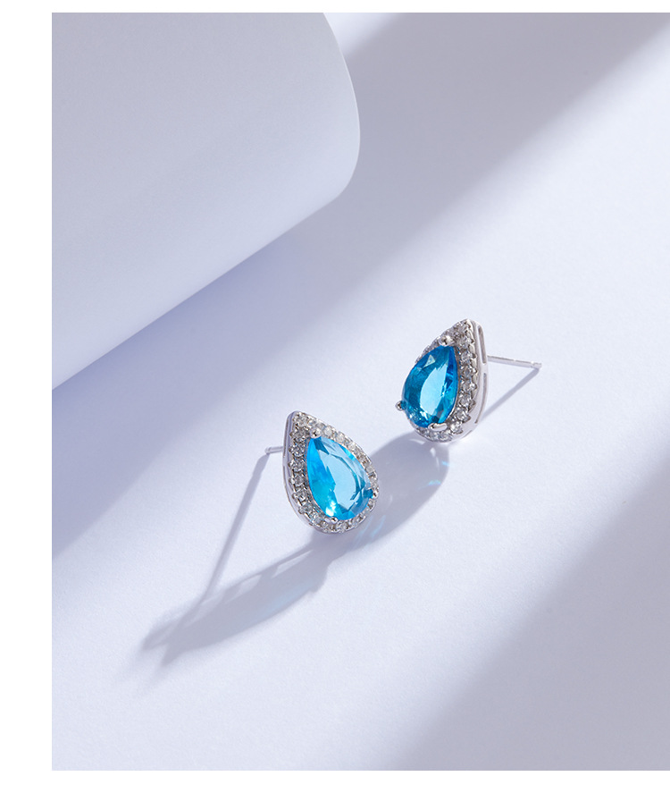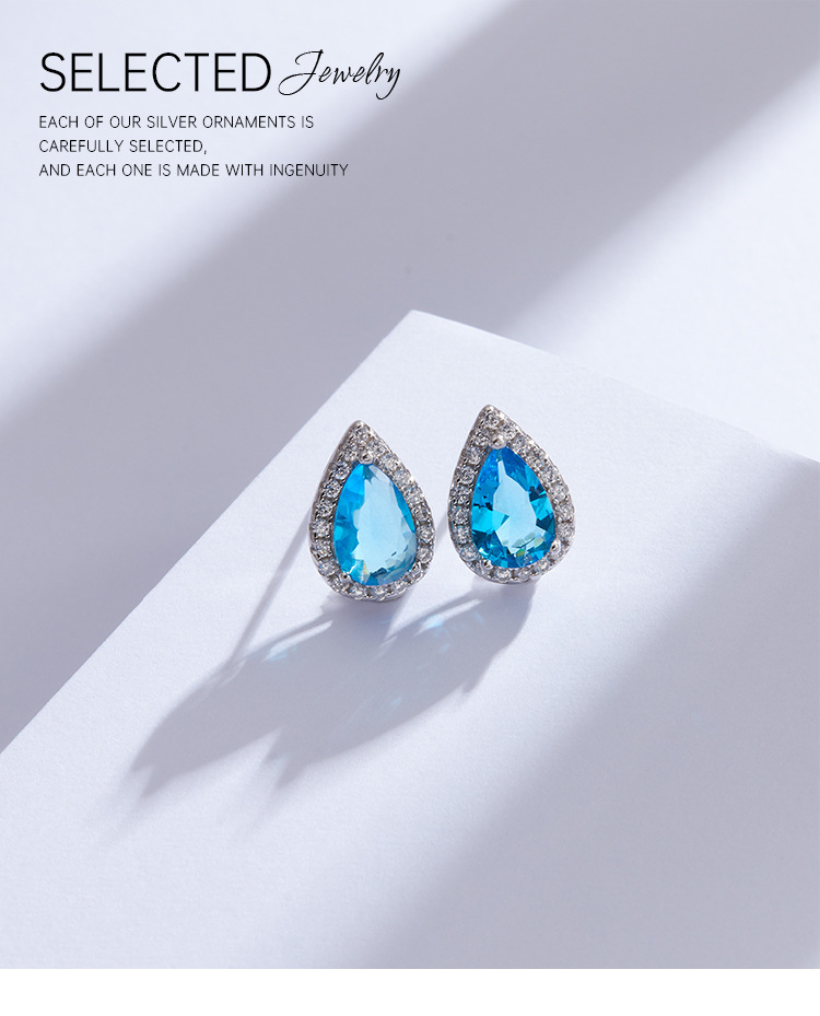 Gota de agua mar azul Zircon pendientes 925 plata esterlina diseño de nicho 2023 nueva luz de lujo de alto grado pendientes femeninos