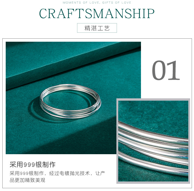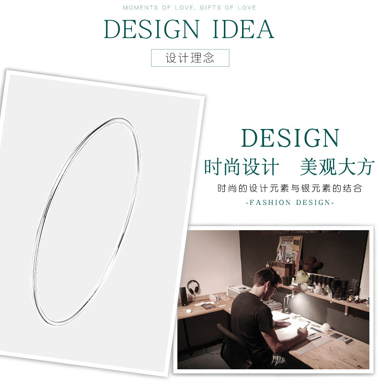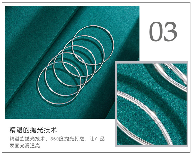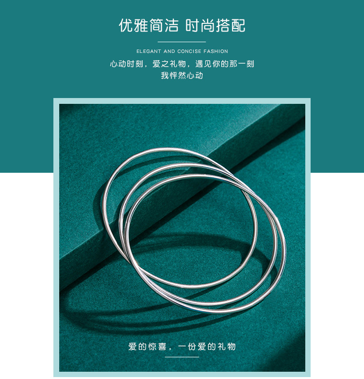 S999 pulsera de plata esterlina para las mujeres de moda simple círculo Delgado brillante pulsera de plata sólida para novia