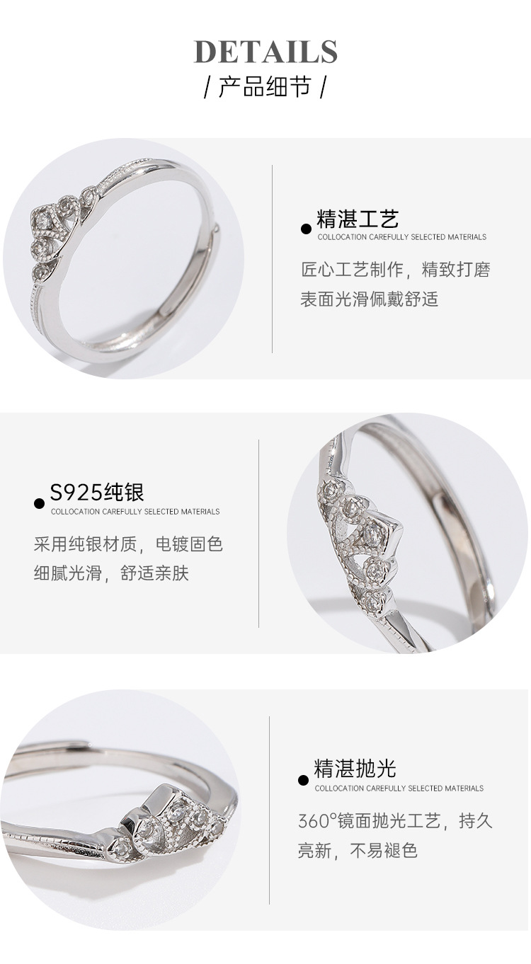 2023 nuevo Anillo de dedo índice de lujo anillo de sentido alto Anillo de corona pequeña hembra abierta 925 plata esterlina diseño de nicho