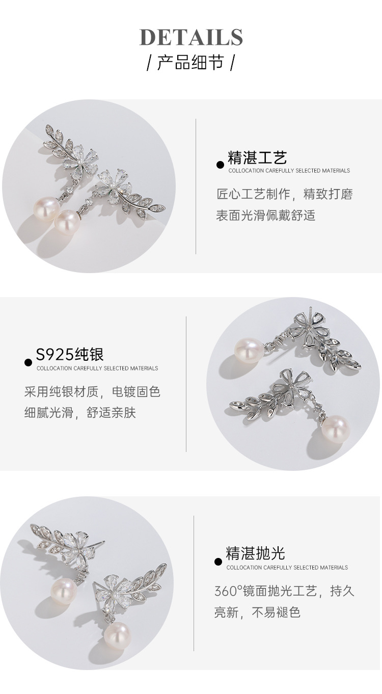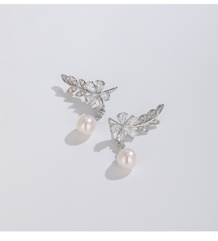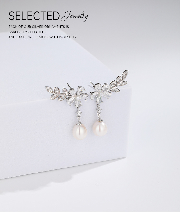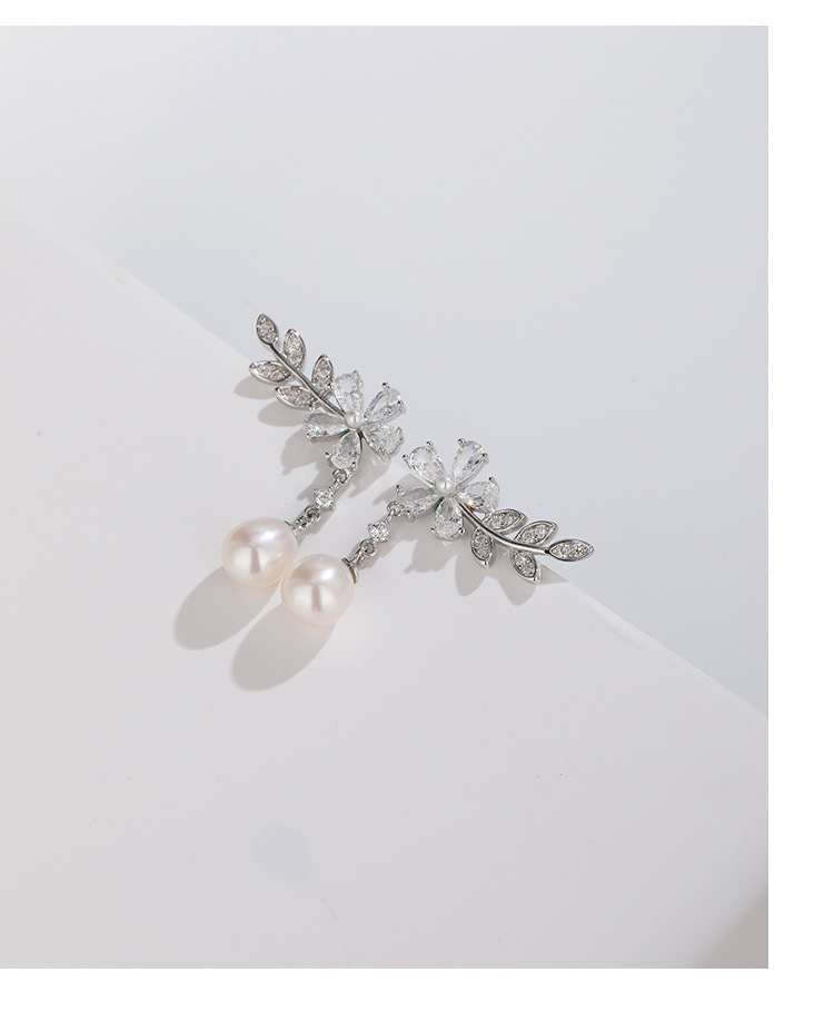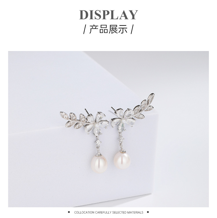 Pendientes de perlas de agua dulce de plata esterlina 925 pendientes de mujer luz de lujo de alto grado nicho diseño zircon pendientes de flores pendientes